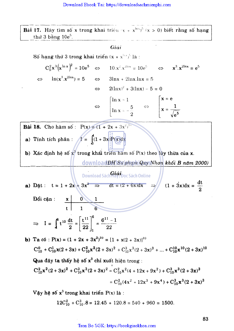 Giải Bài Tập Giải Tích Lớp 12 Nâng Cao – Nguyễn Văn Lộc
