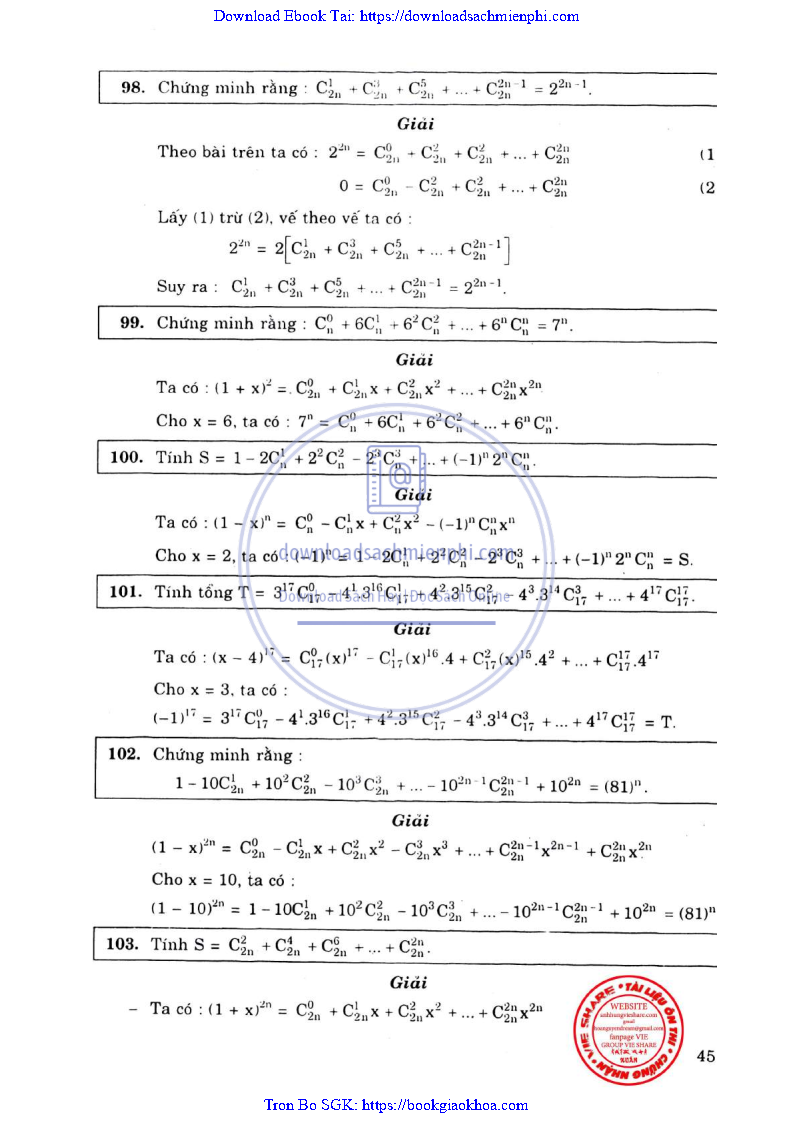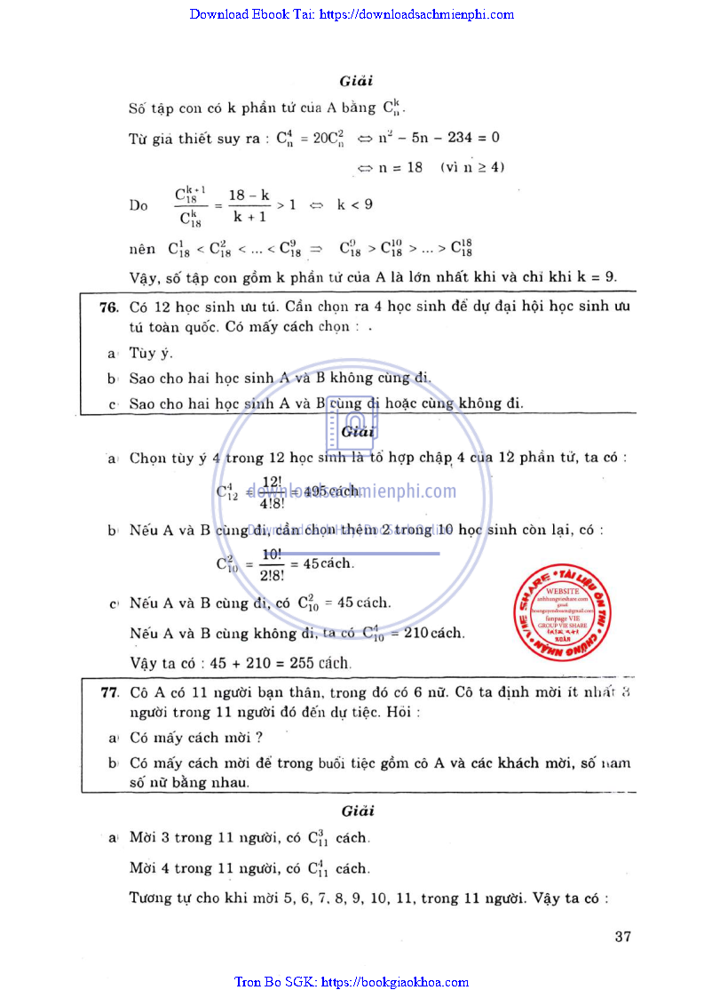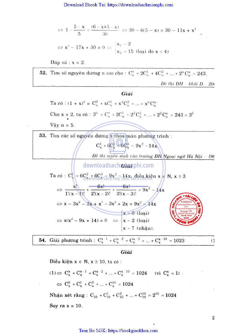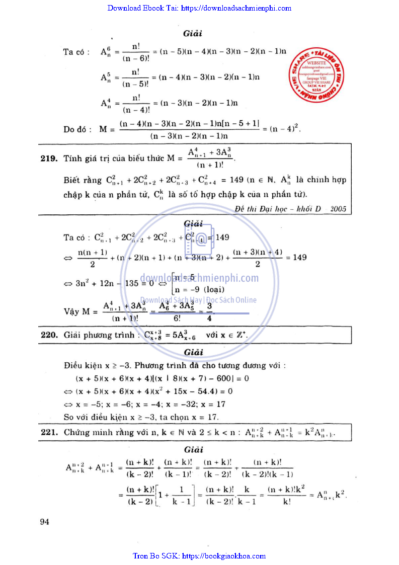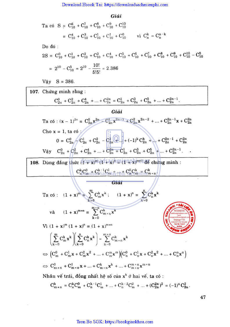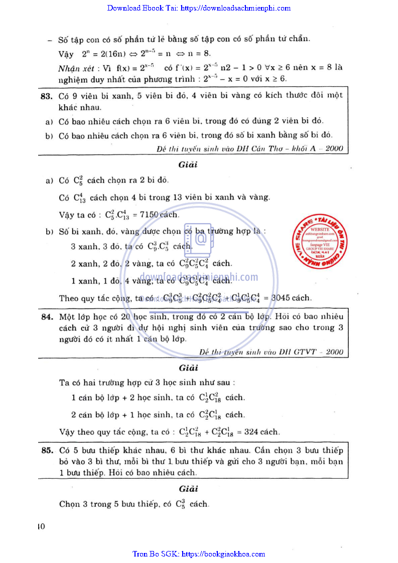 Phương Pháp Giải Toán Đại Số Tổ Hợp 12 – Võ Giang Giai