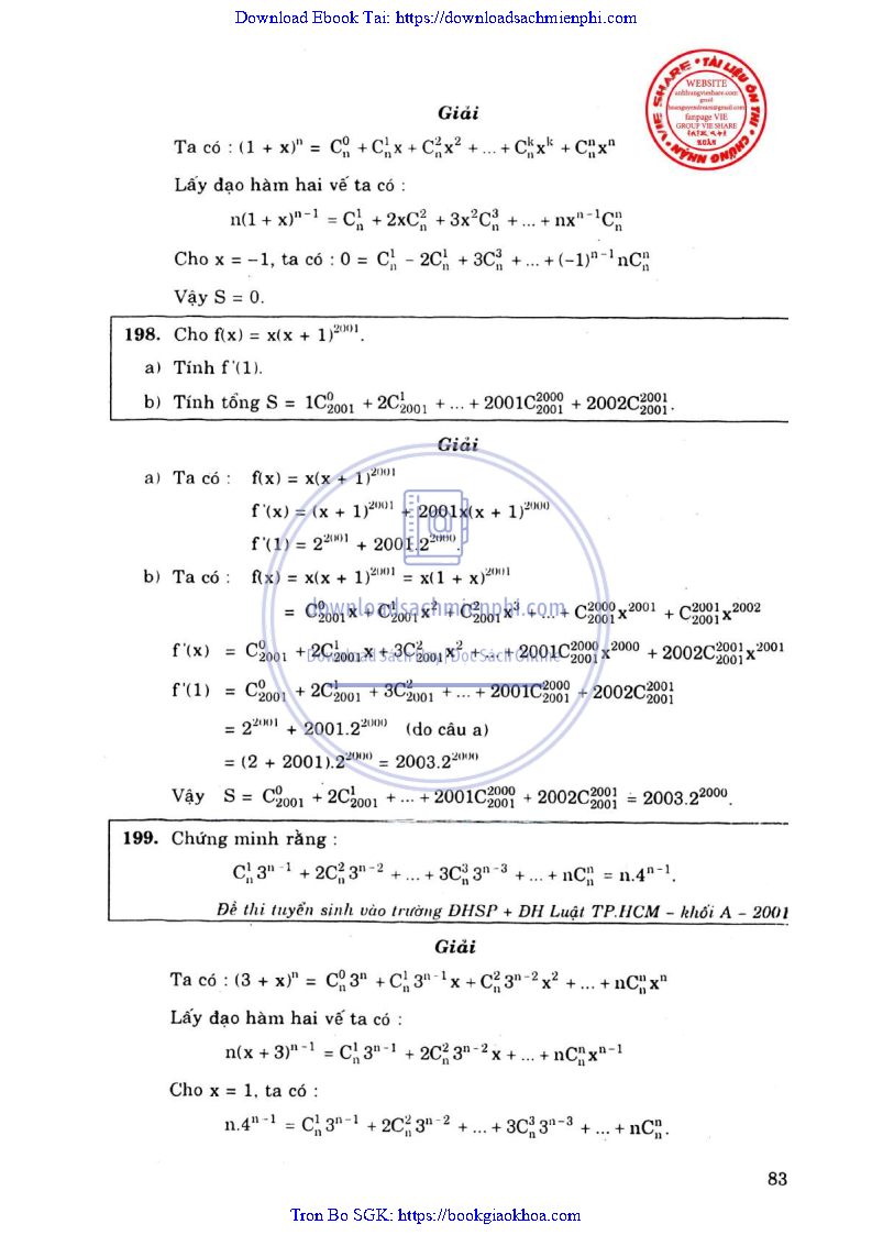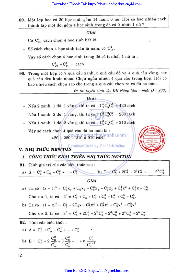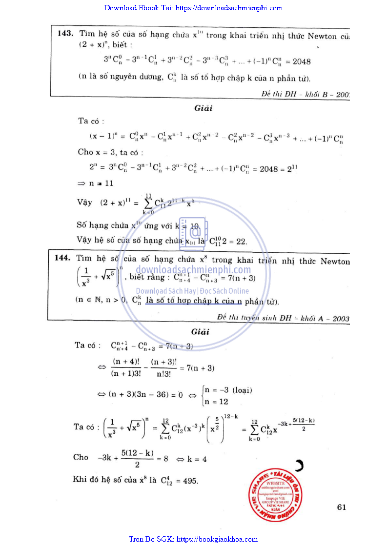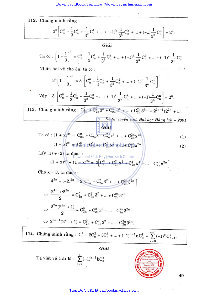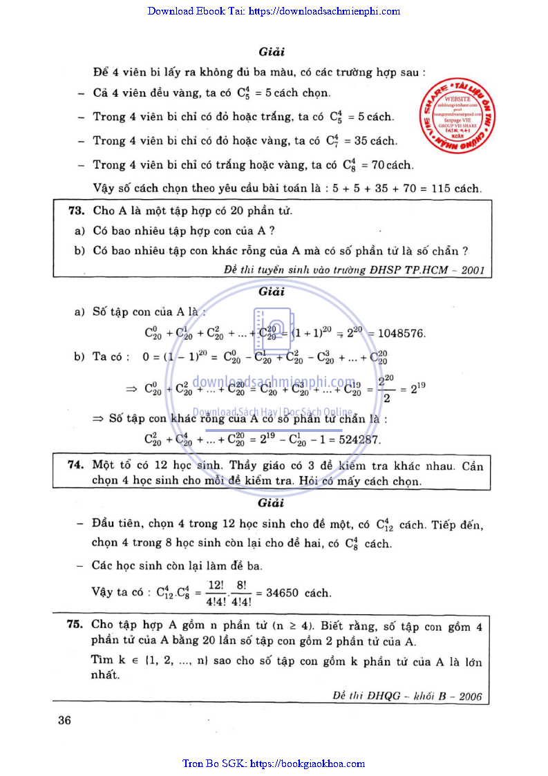 Phương Pháp Giải Toán Đại Số Tổ Hợp 12 – Võ Giang Giai