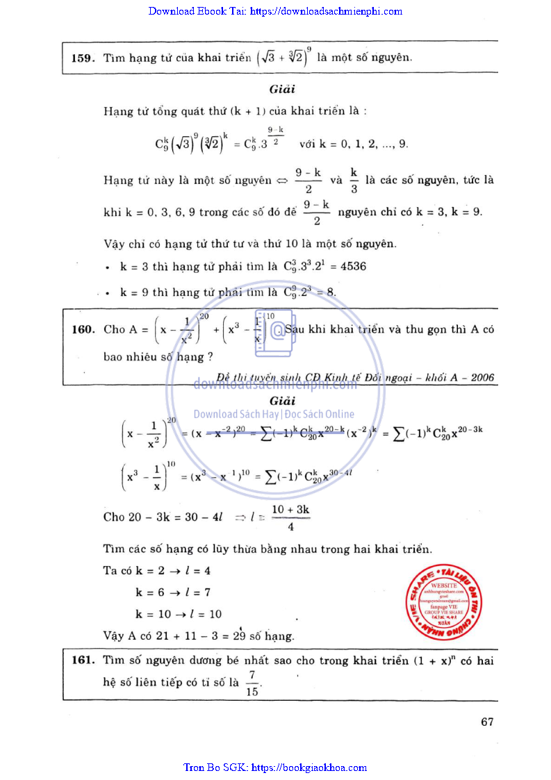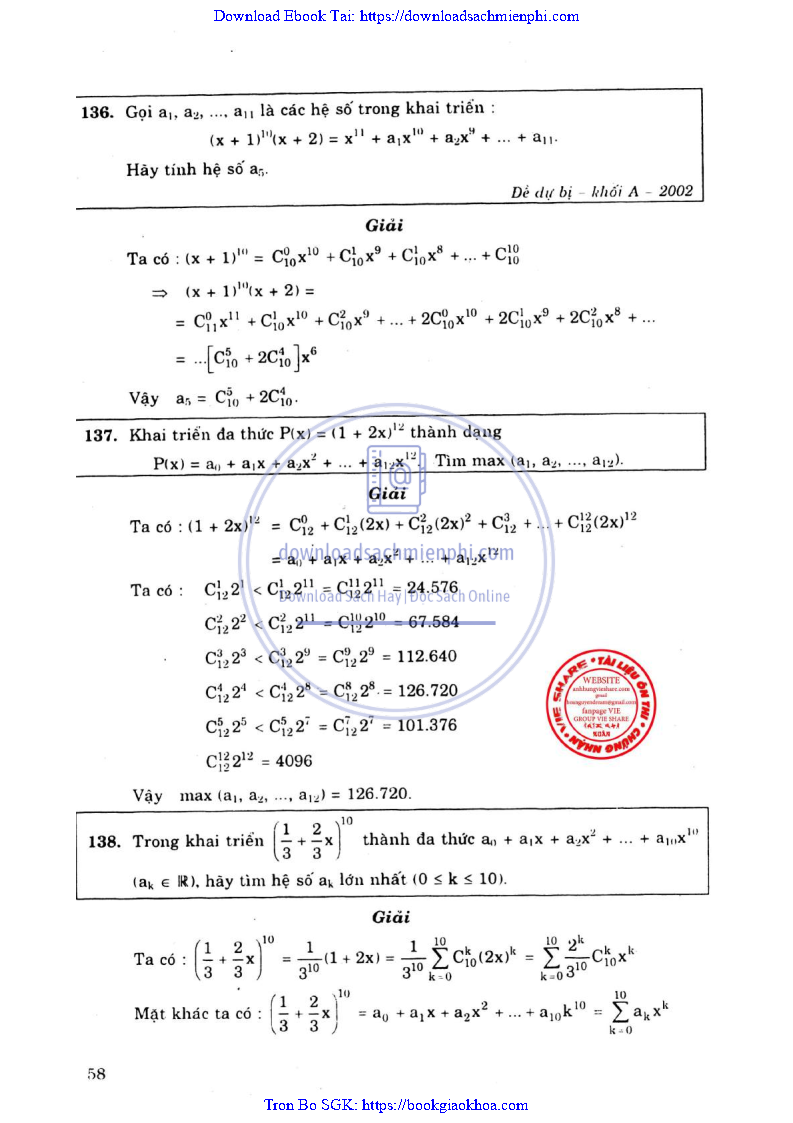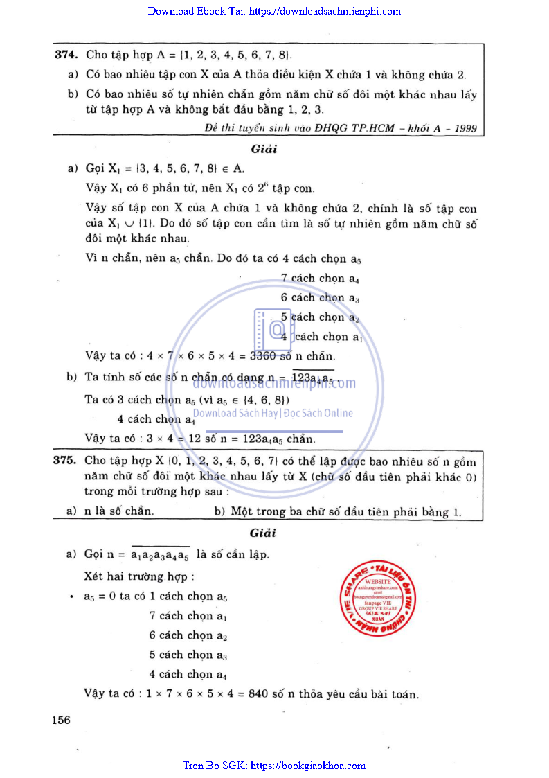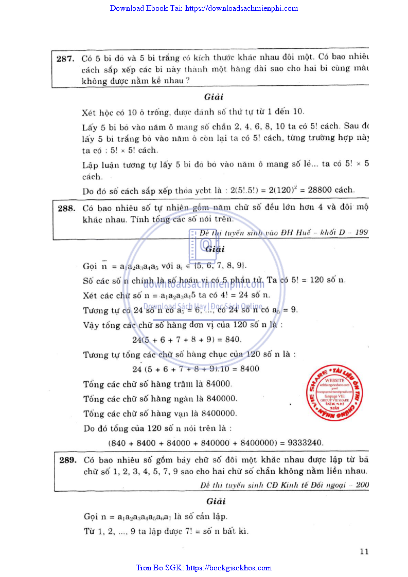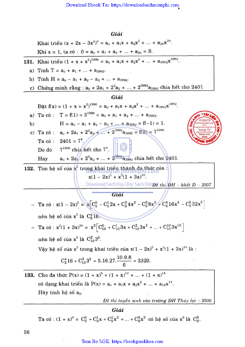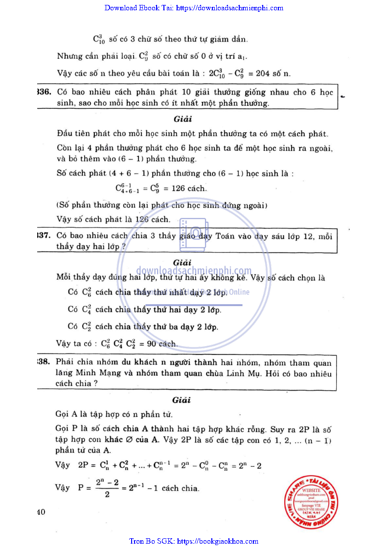 Phương Pháp Giải Toán Đại Số Tổ Hợp 12 – Võ Giang Giai