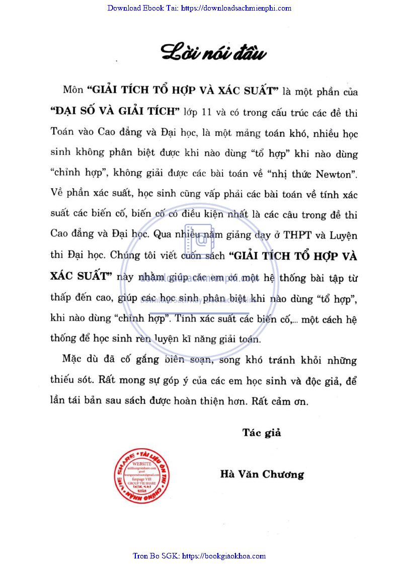 Phương Pháp Giải Toán Giải Tích Tổ Hợp Và Xác Suất – Hà Văn Chương