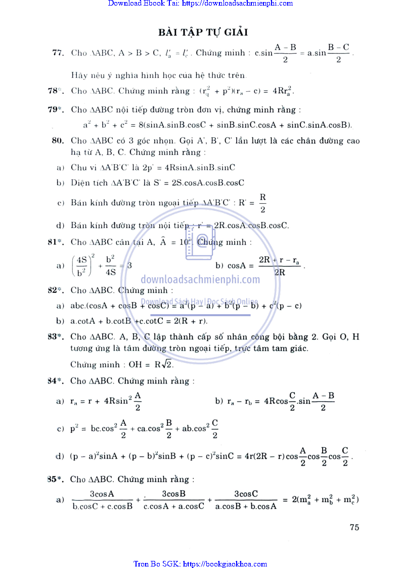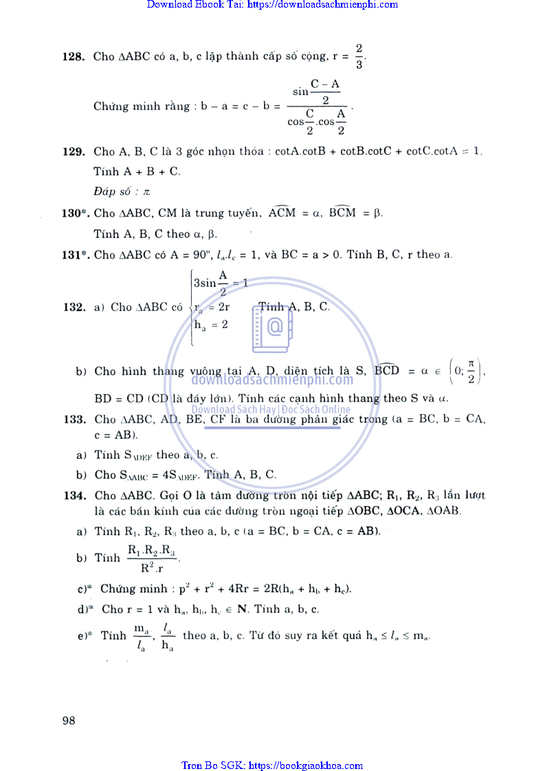 Giải Bài Tập Hình Học Lớp 12 Nâng Cao – Nguyễn Văn Lộc