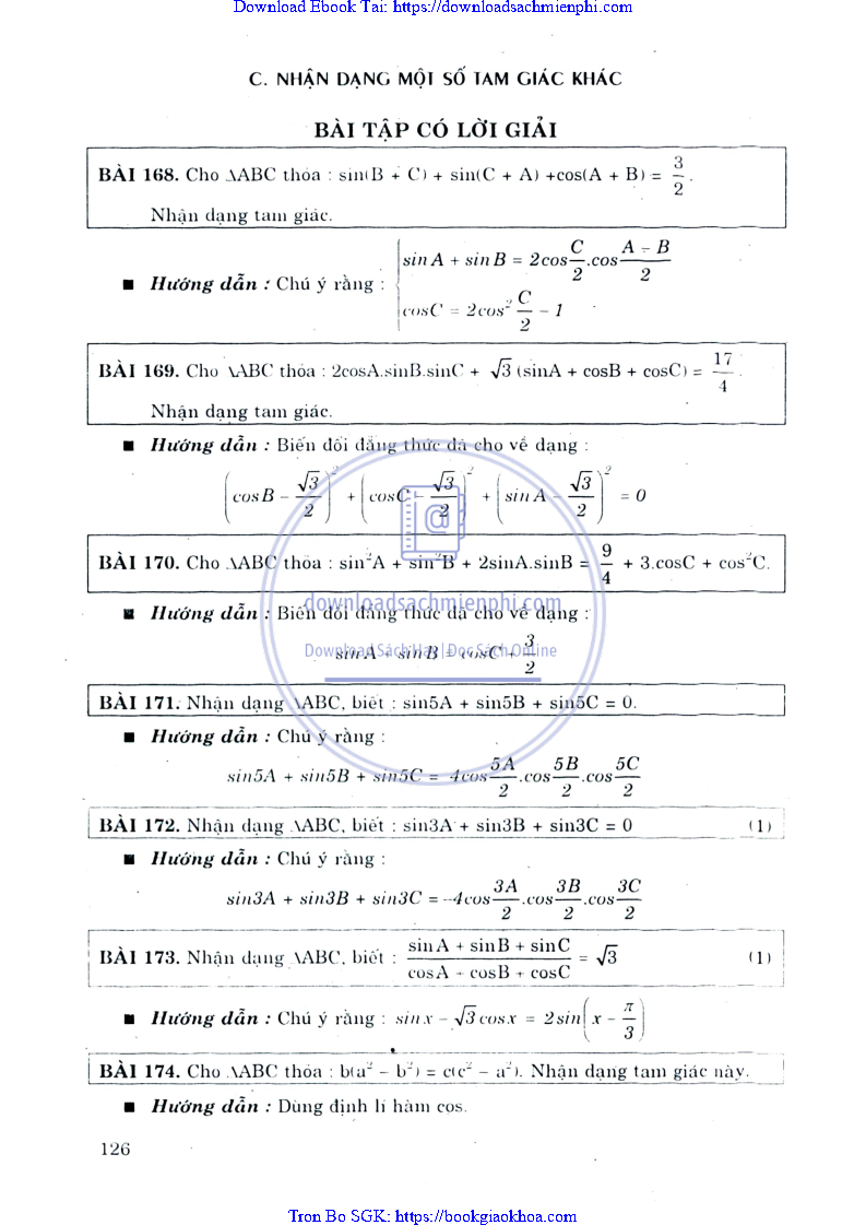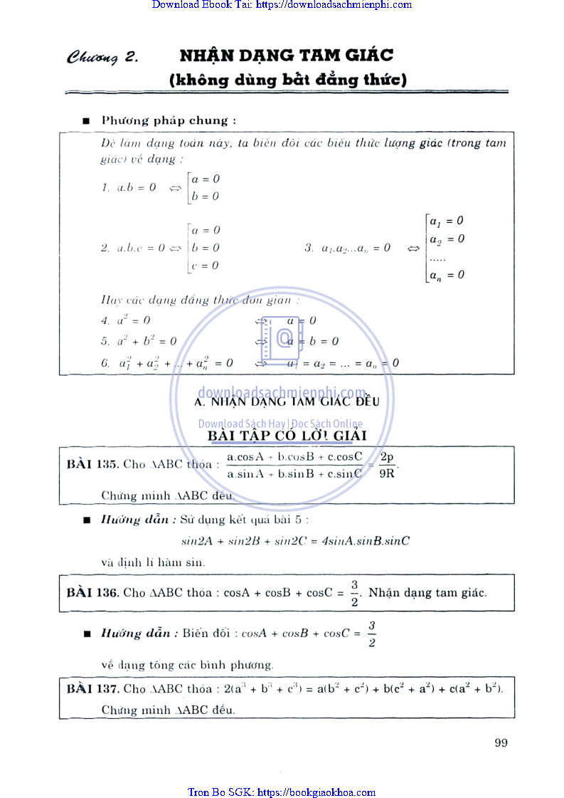CHƯƠNG II: NHẬN DẠNG TAM GIÁC (KHÔNG DÙNG BẤT ĐẲNG THỨC)