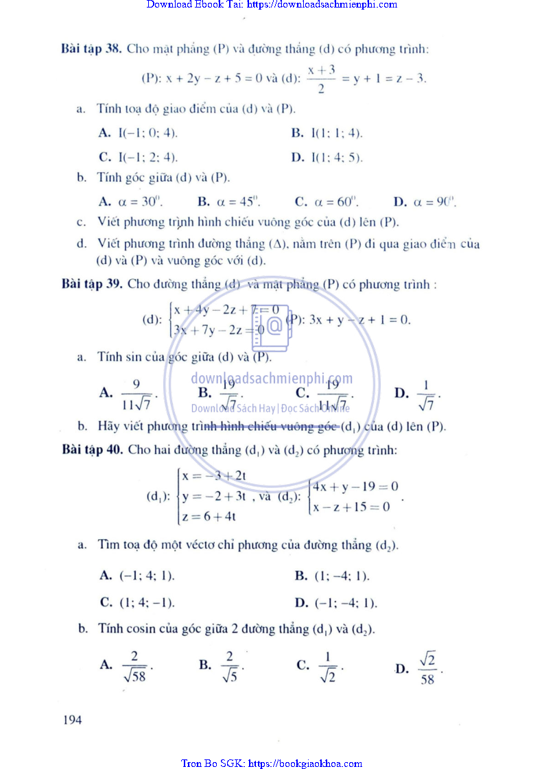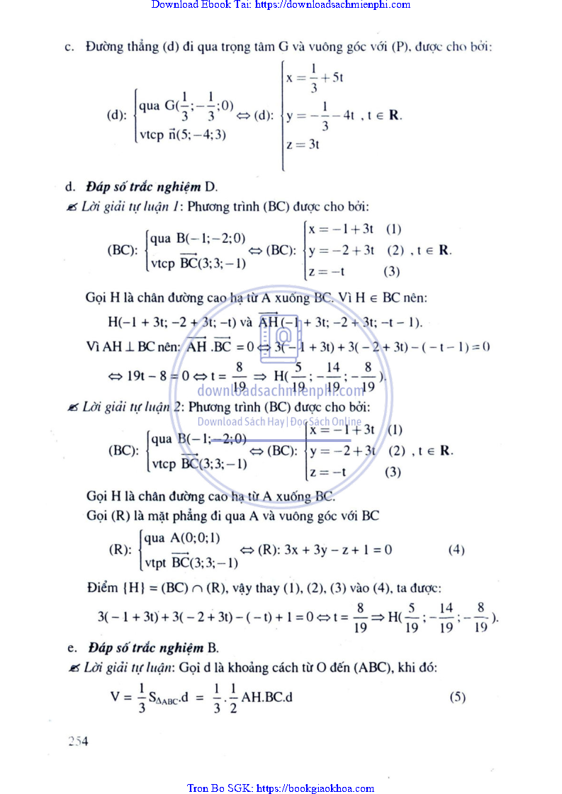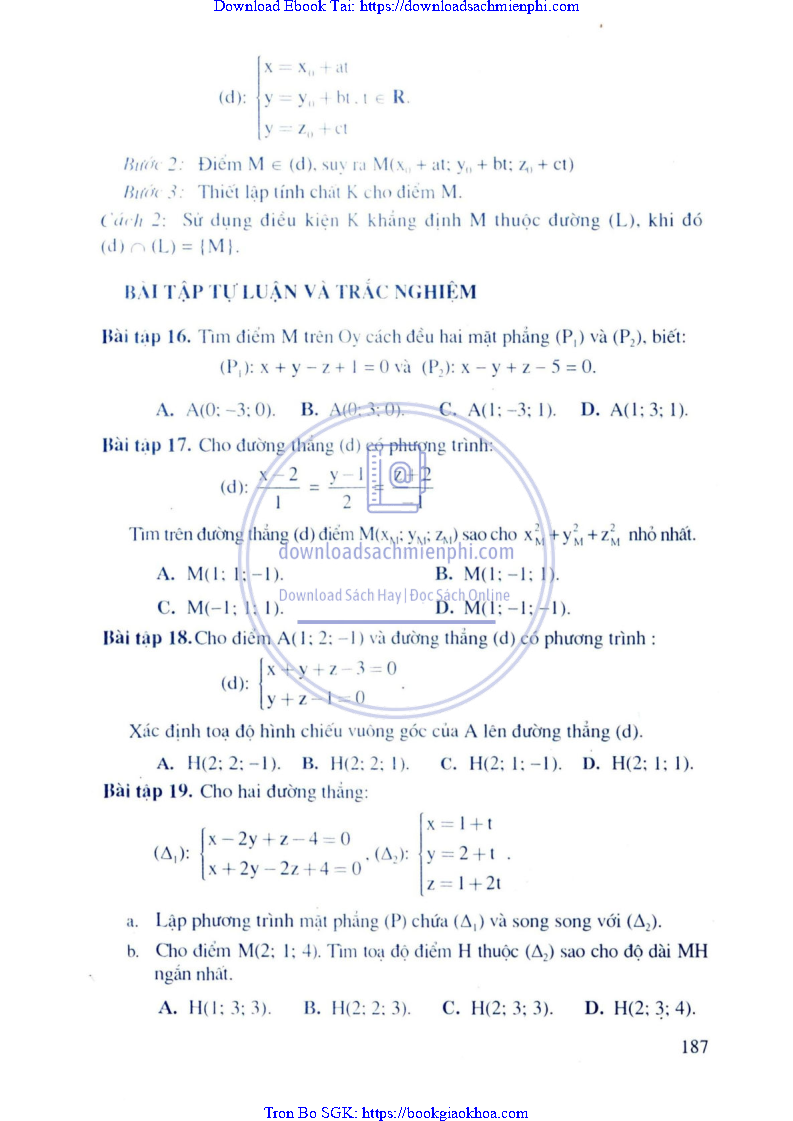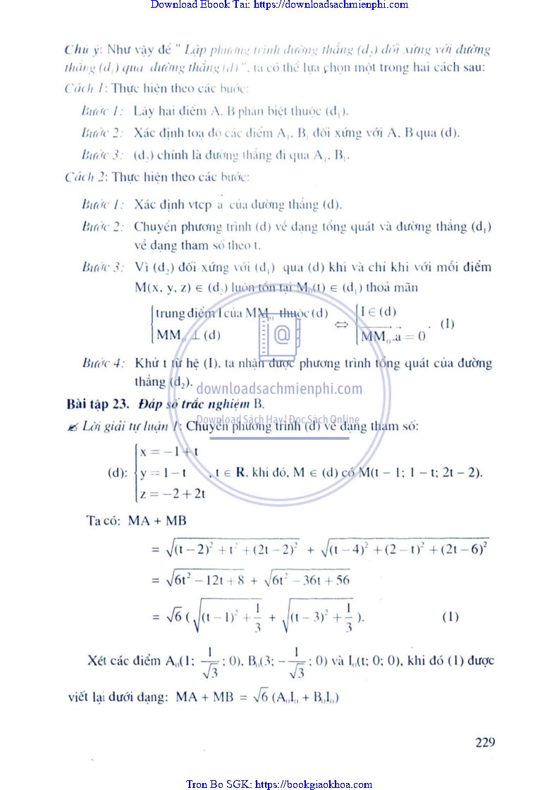 Phương Pháp Giải Toán Trắc Nghiệm Hình Học Giải Tích – Trần Bá Hà