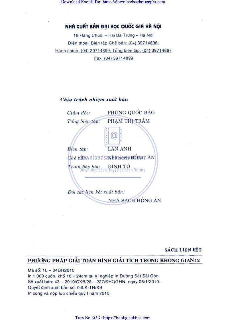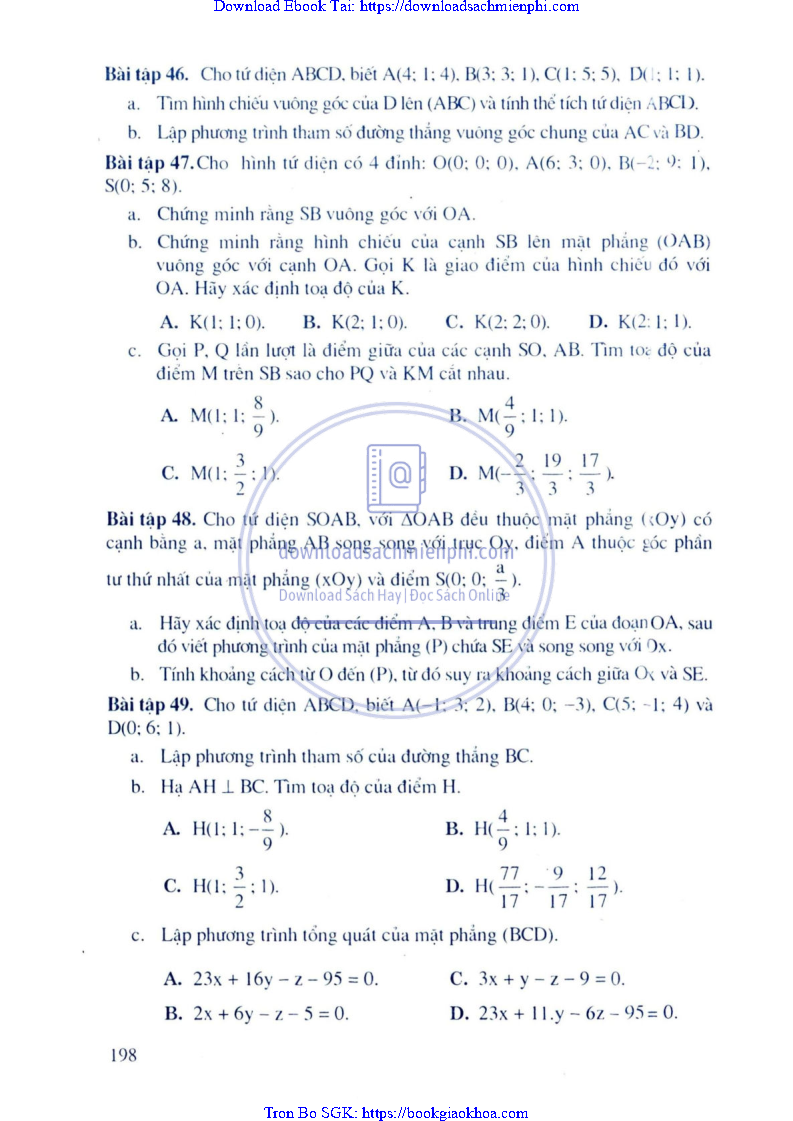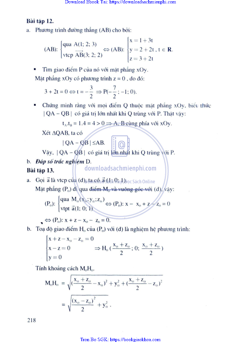 Giải Bài Tập Hình Học Lớp 12 Nâng Cao – Nguyễn Văn Lộc