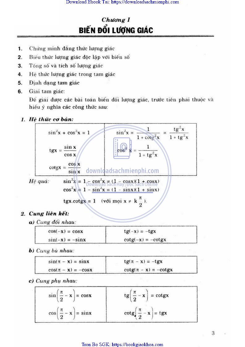 CHƯƠNG I: BIẾN ĐỔI LƯỢNG GIÁC