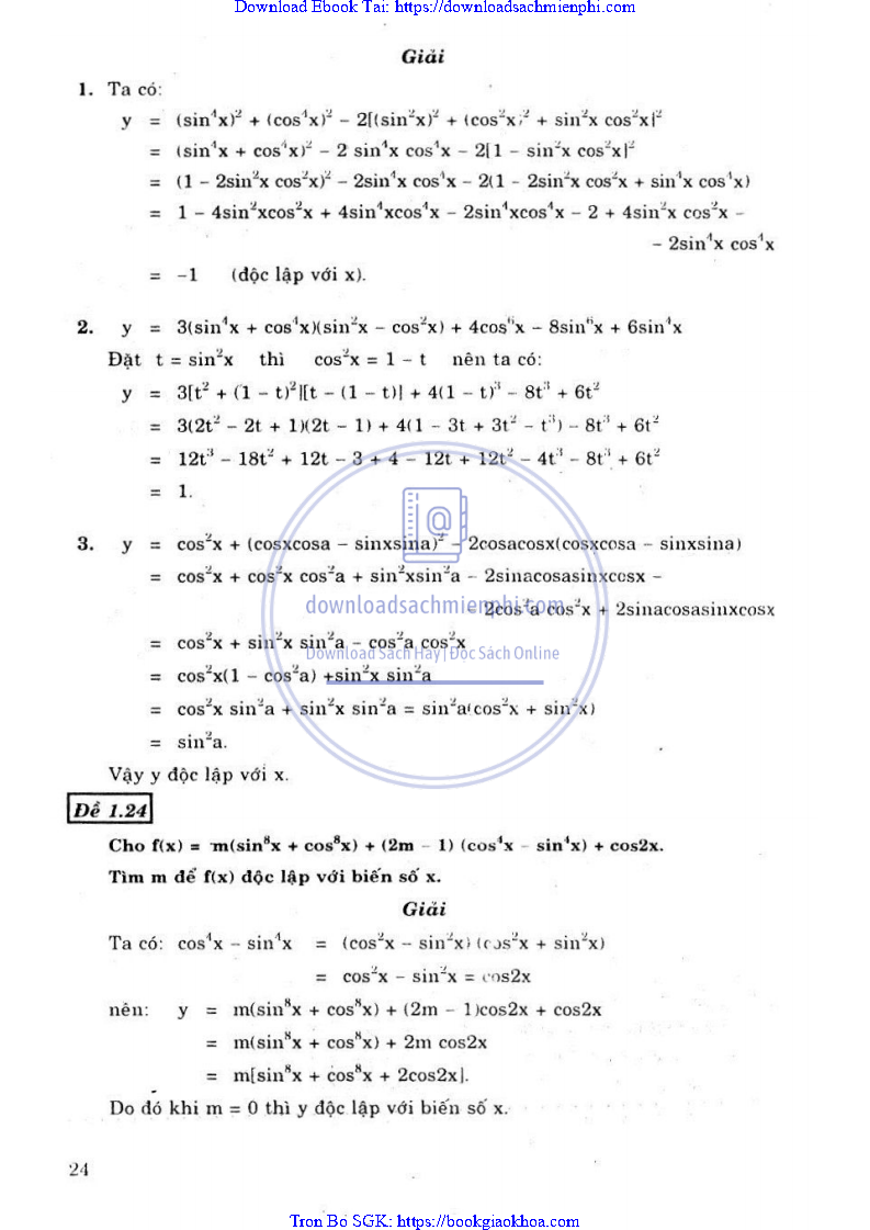 Giải Bài Tập Giải Tích Lớp 12 Chương Trình Chuẩn – Nguyễn Văn Lộc