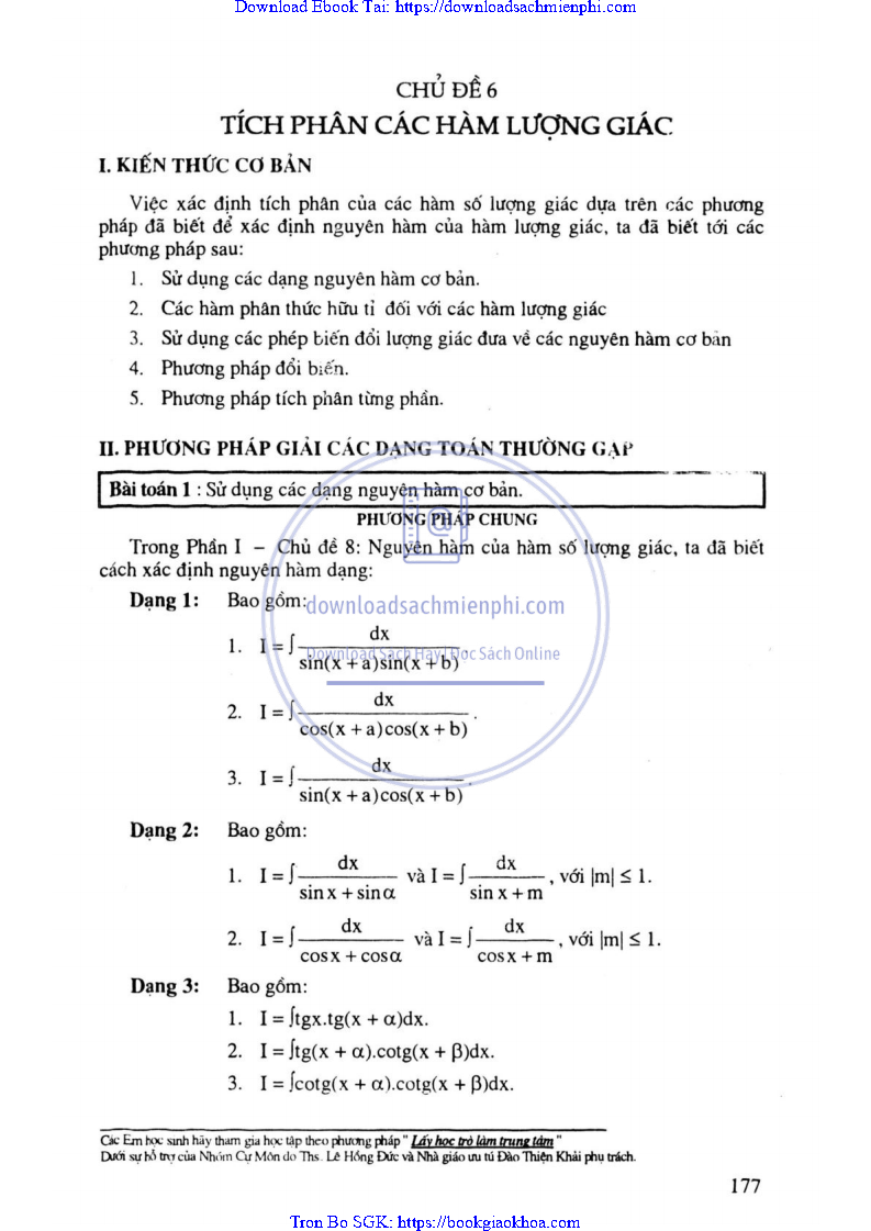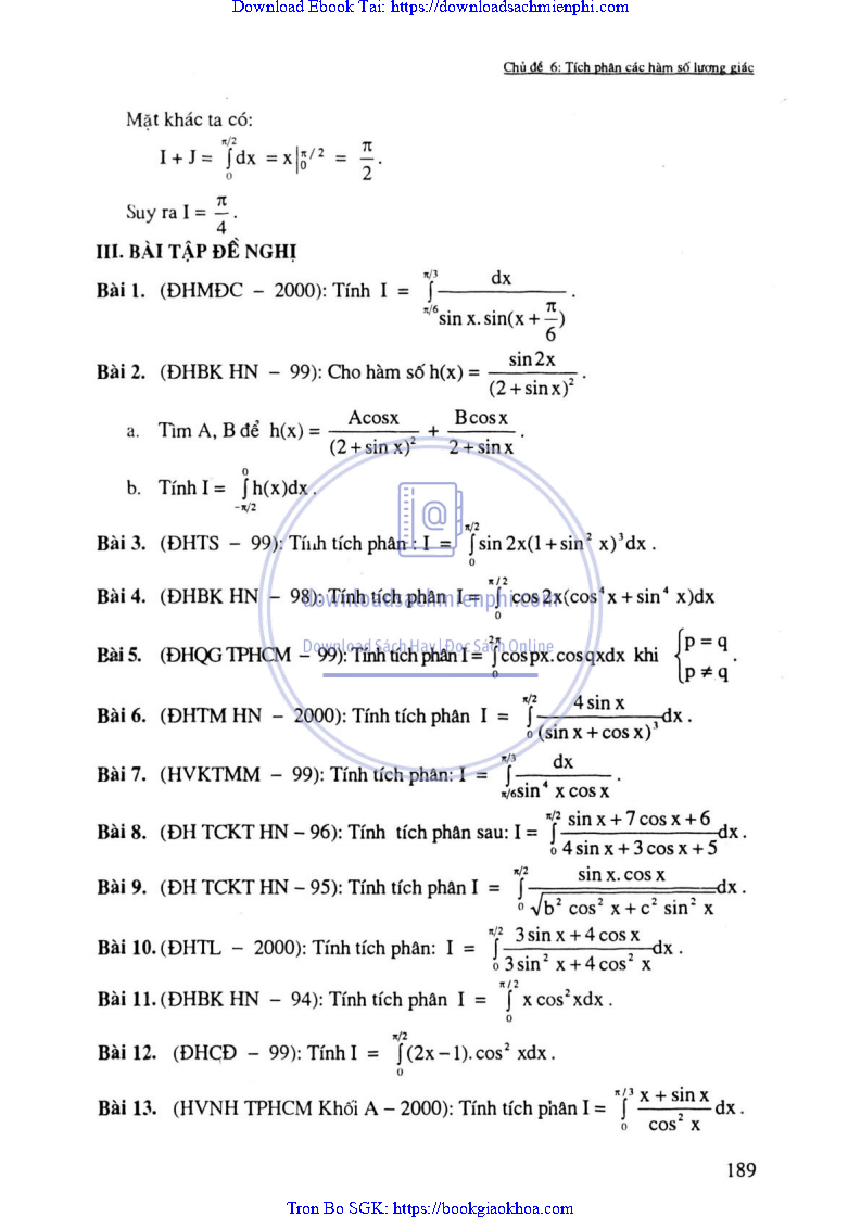 - CHỦ ĐỀ 6: TÍCH PHÂN CÁC HÀM LƯỢNG GIÁC