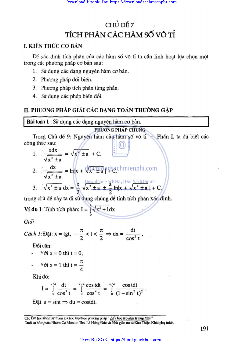 - CHỦ ĐỀ 7: TÍCH PHÂN CÁC HÀM VÔ TỈ
