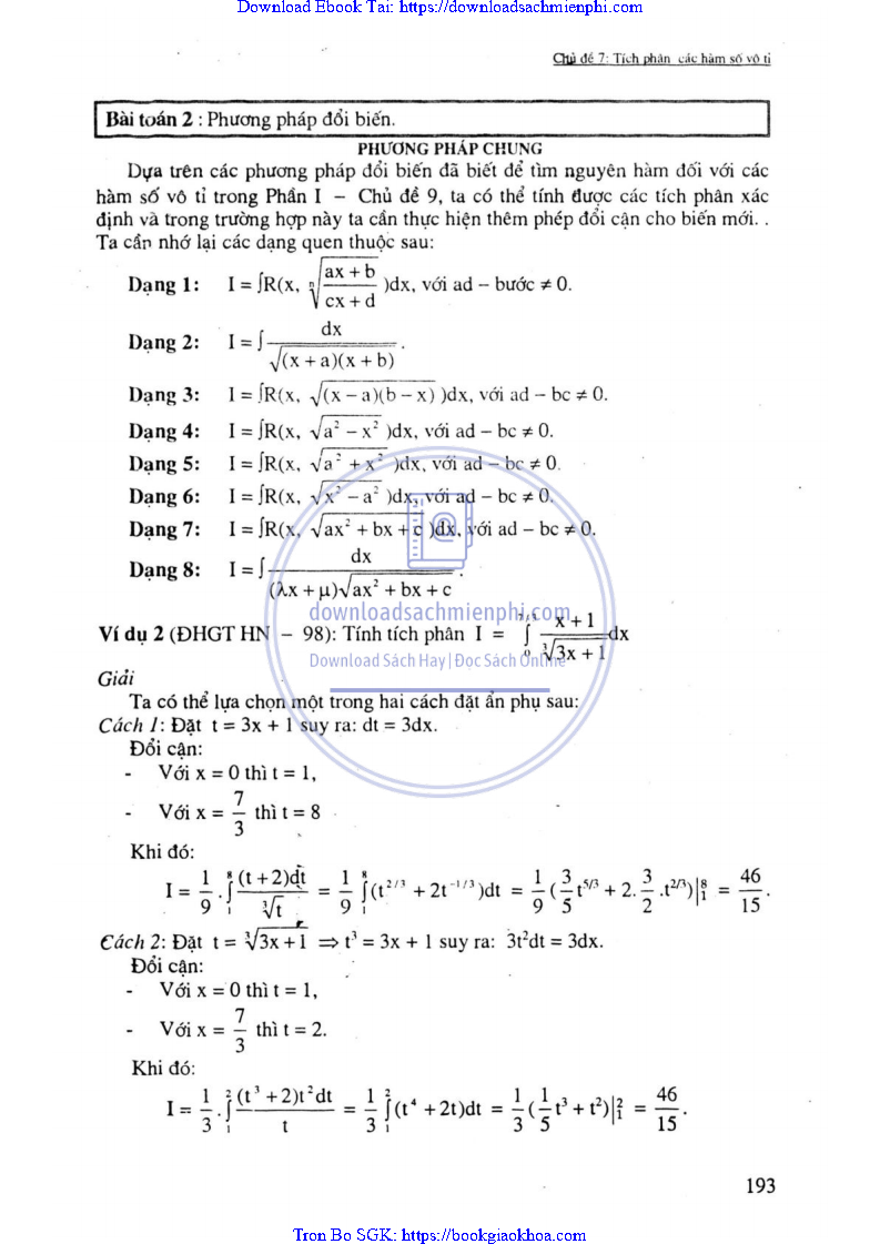 - CHỦ ĐỀ 2: TÍNH TÍCH PHÂN BẰNG PHƯƠNG PHÁP ĐỔI BIẾN