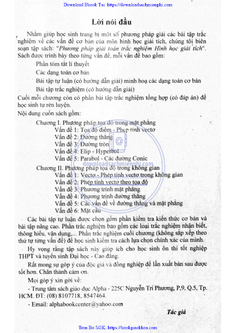 Phương Pháp Giải Toán Trắc Nghiệm Hình Học Giải Tích – Trần Bá Hà