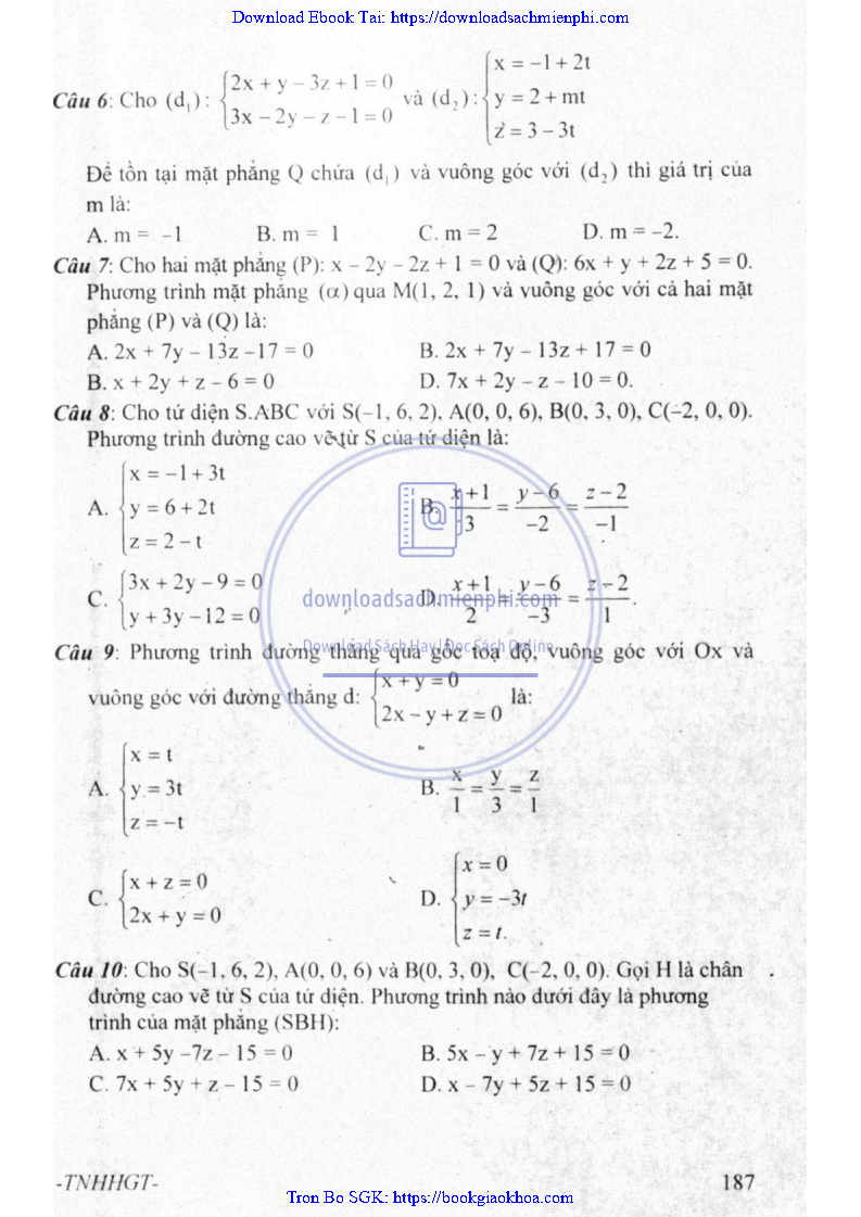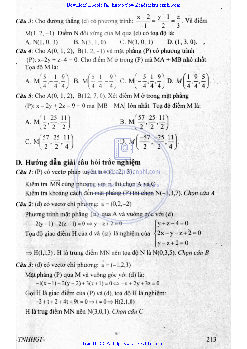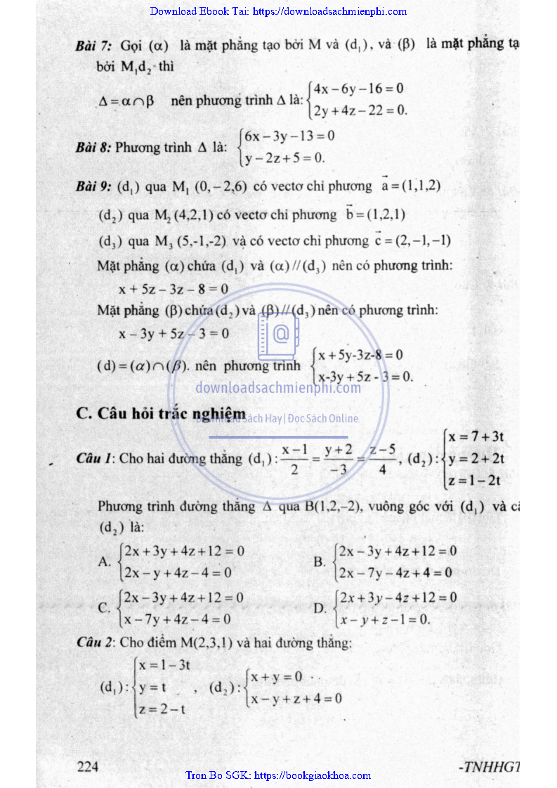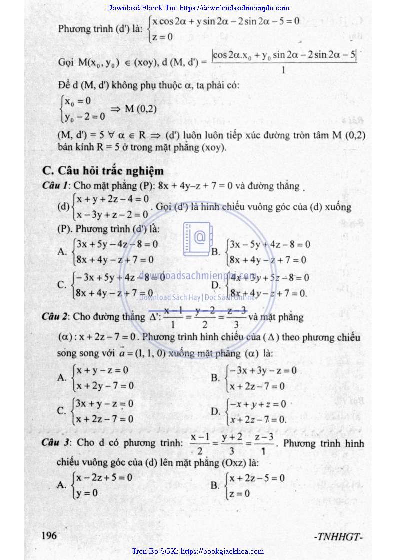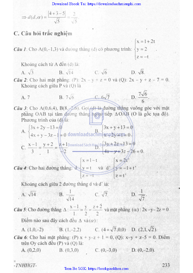 Phương Pháp Giải Toán Trắc Nghiệm Hình Học Giải Tích – Trần Bá Hà