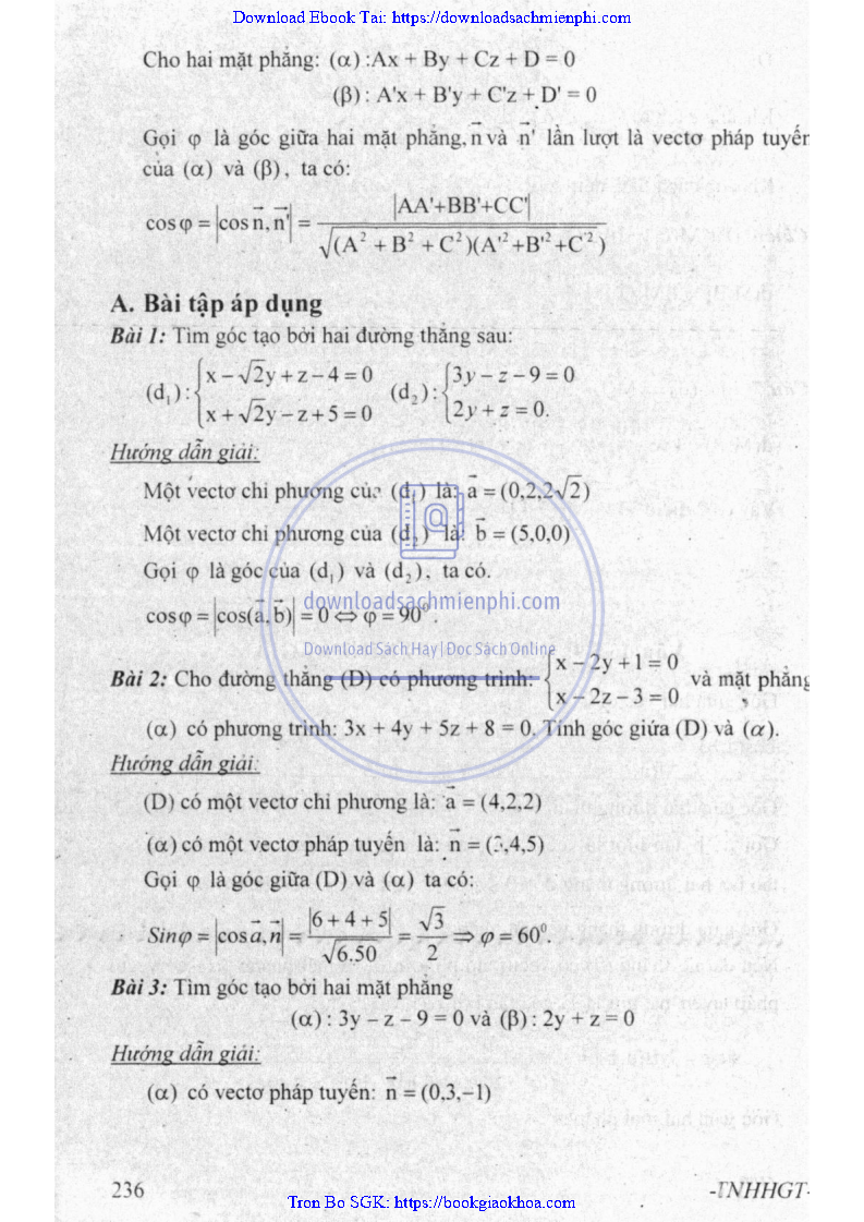 Giải Bài Tập Hình Học Lớp 12 Nâng Cao – Nguyễn Văn Lộc