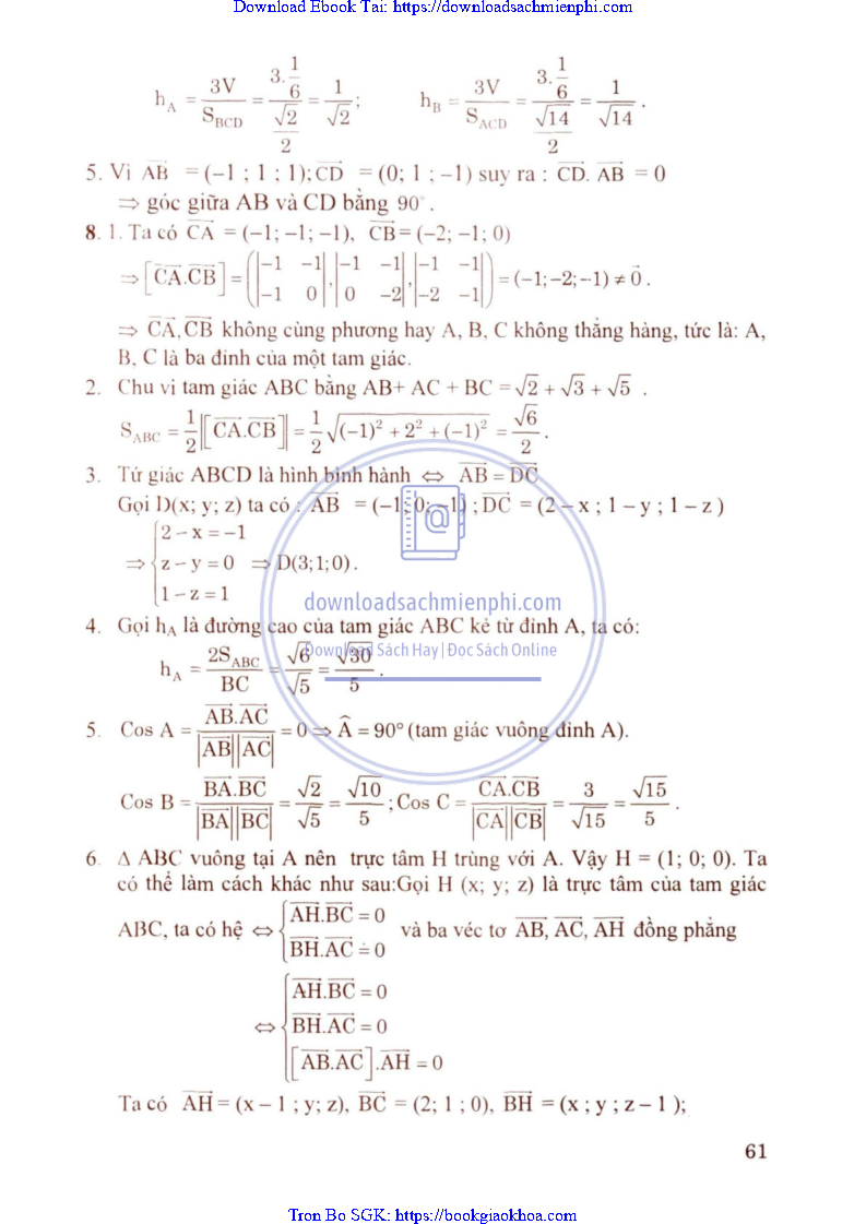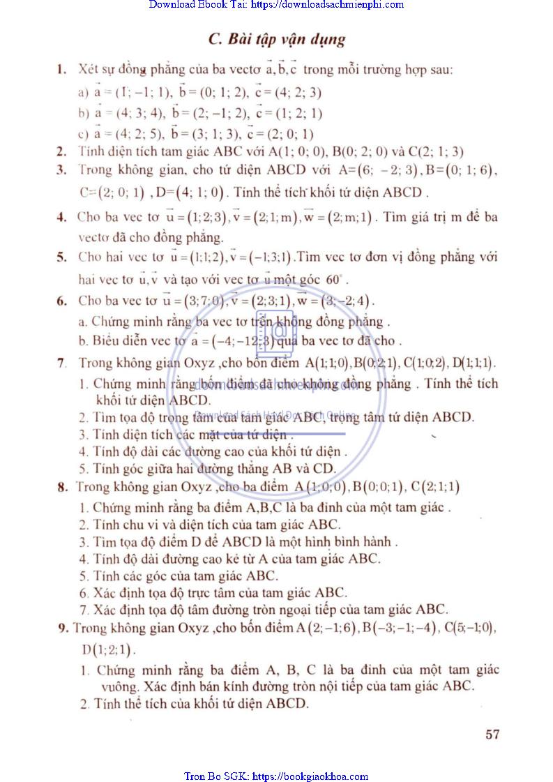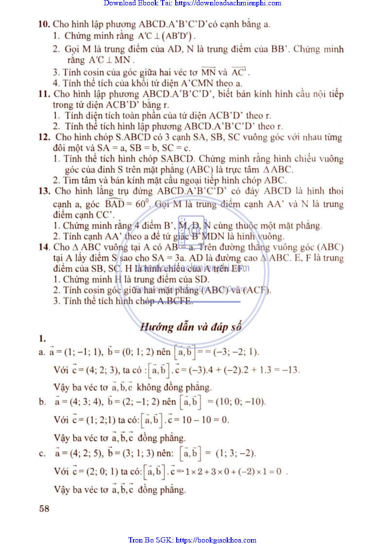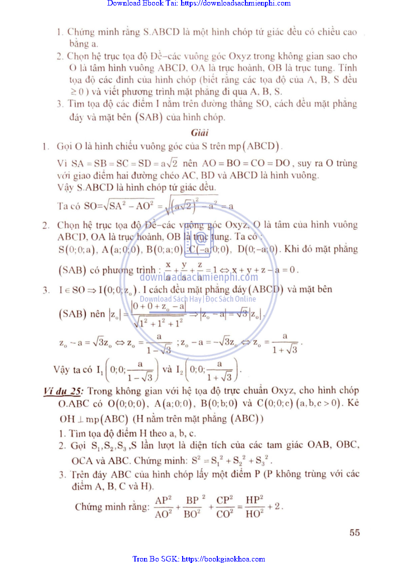 Giải Bài Tập Hình Học Lớp 12 Nâng Cao – Nguyễn Văn Lộc