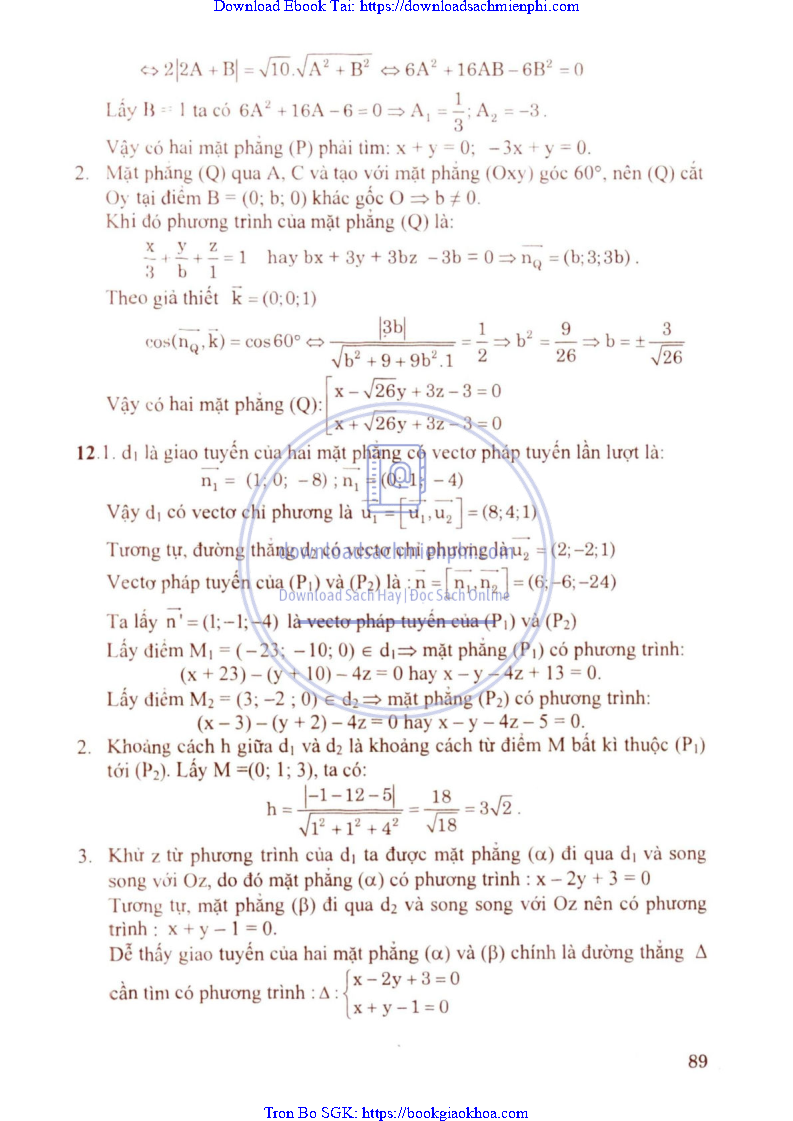 Giải Bài Tập Hình Học Lớp 12 Nâng Cao – Nguyễn Văn Lộc