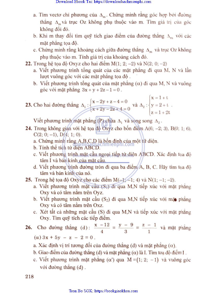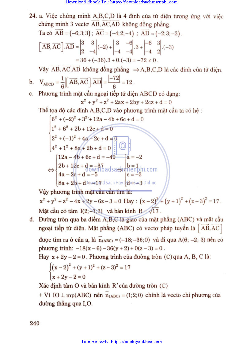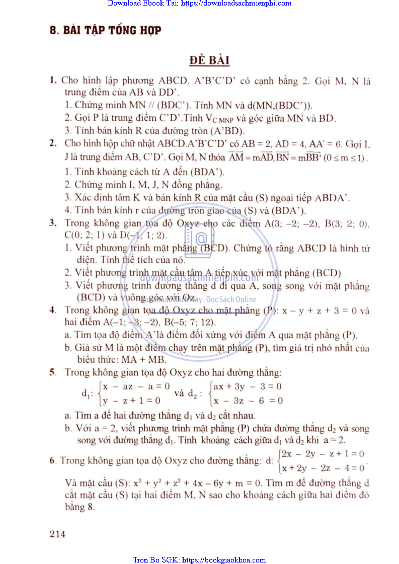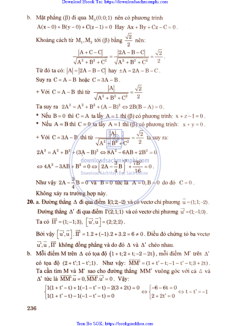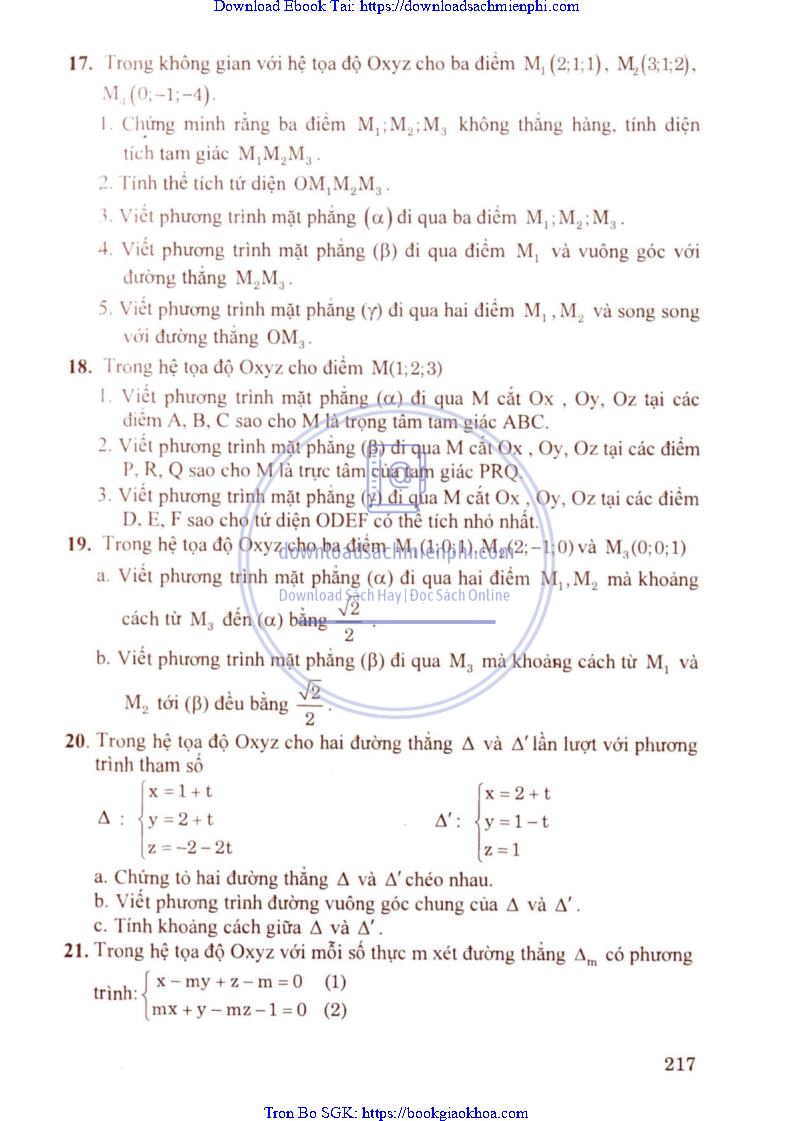 Giải Bài Tập Hình Học Lớp 12 Nâng Cao – Nguyễn Văn Lộc