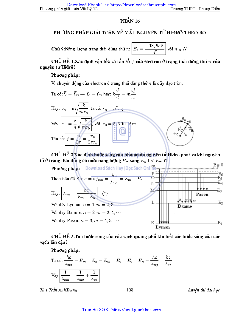 PHẦN 16. PHƯƠNG PHÁP GIẢI TOÁN VỀ MẪU NGUYÊN TỬ HIĐRÔ THEO BO