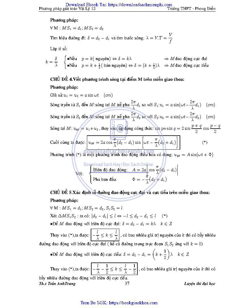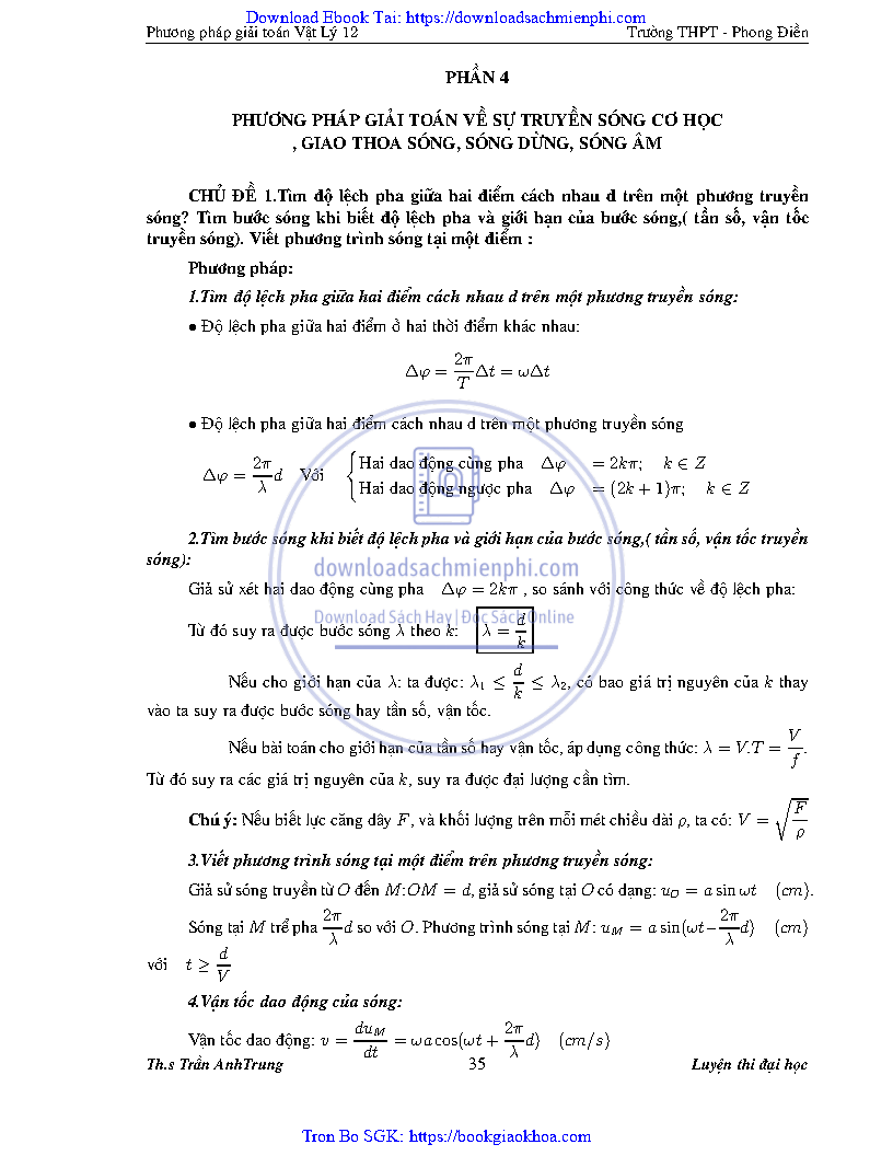 - PHẦN 4. PHƯƠNG PHÁP GIẢI TOÁN VỀ SỰ TRUYỀN SÓNG CƠ HỌC, GIAO THOA SÓNG, SÓNG DỪNG, SÓNG ÂM