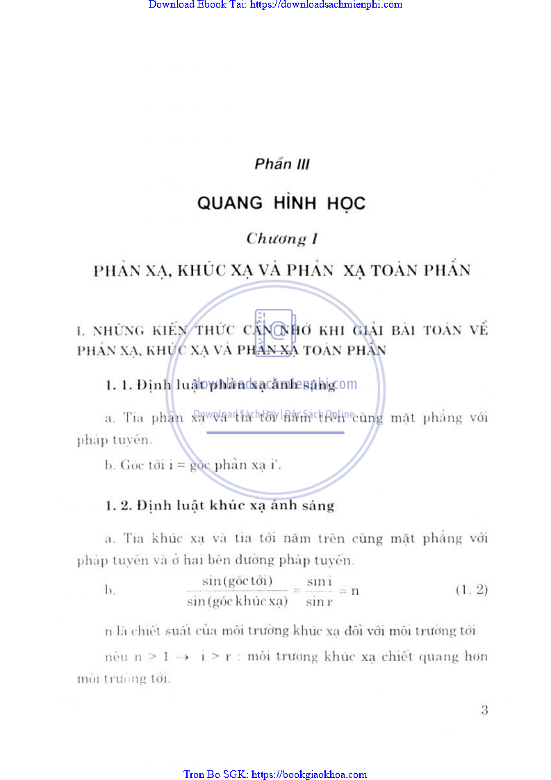 CHƯƠNG I: PHẢN XẠ, KHÚC XẠ VÀ PHẢN XẠ TOÀN PHẦN