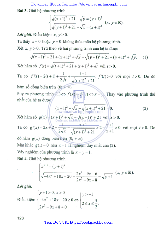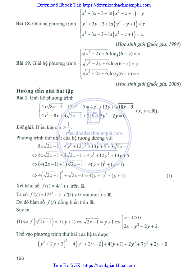 Giải Bài Tập Giải Tích Lớp 12 Nâng Cao – Nguyễn Văn Lộc
