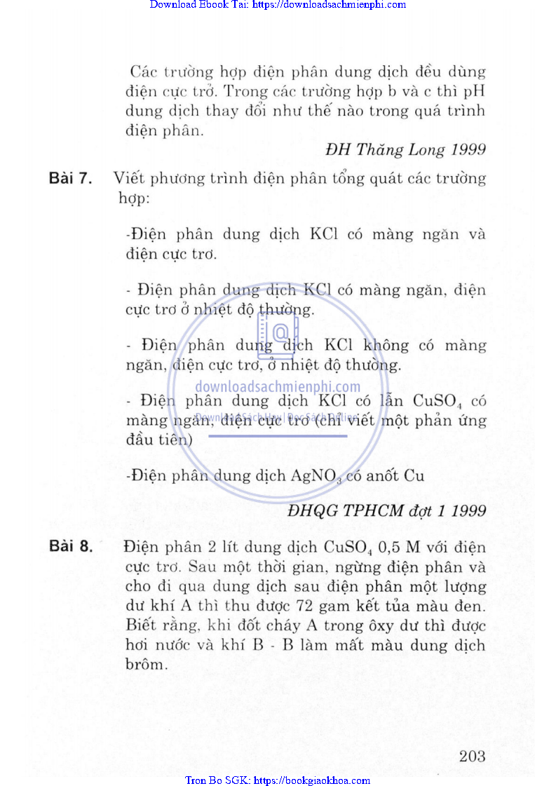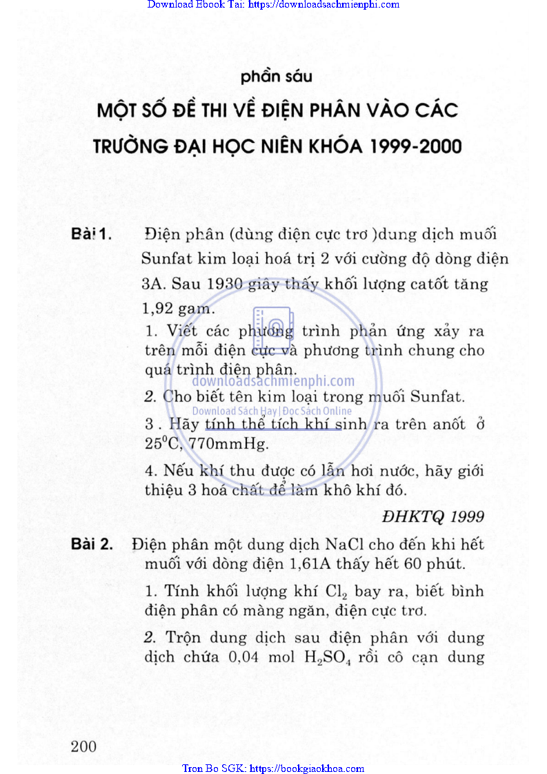 - PHẦN SÁU: MỘT SỐ ĐỀ THI VỀ ĐIỆN PHÂN VÀO CÁC TRƯỜNG ĐH NIÊN KHOÁ 1999-2000