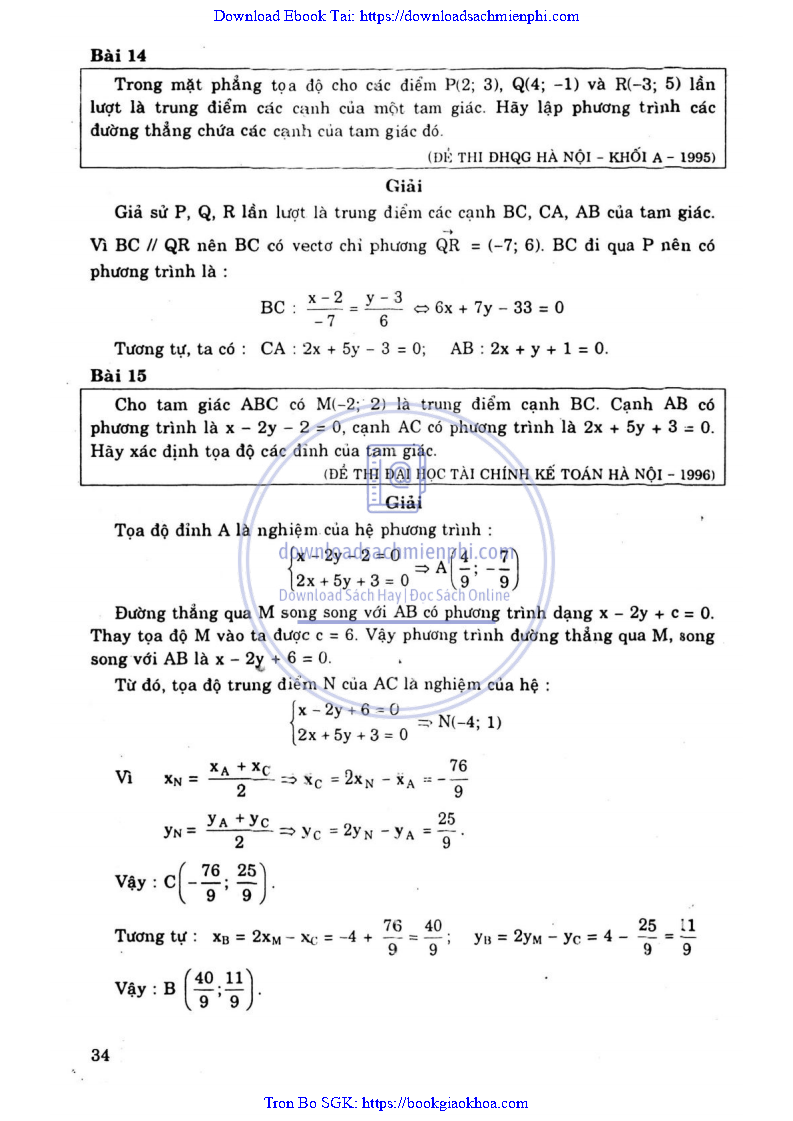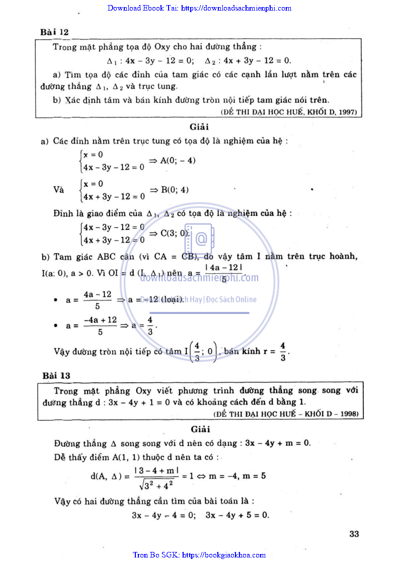 Giải Bài Tập Hình Học Lớp 12 Nâng Cao – Nguyễn Văn Lộc