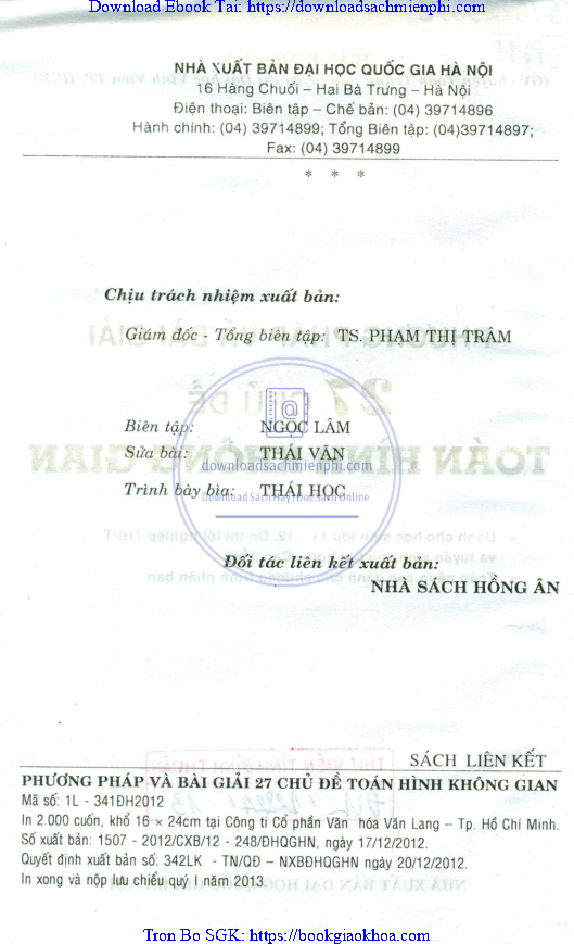 Phương Pháp Và Bài Giải 27 Chủ Đề Toán Hình Không Gian – Trần Minh