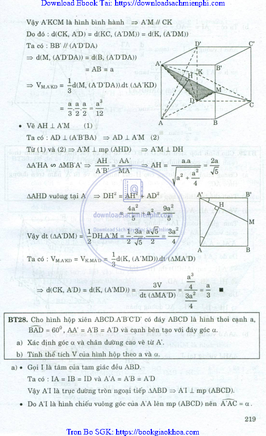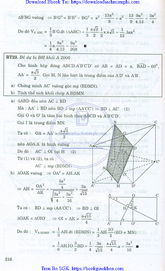 Giải Bài Tập Hình Học Lớp 12 Nâng Cao – Nguyễn Văn Lộc