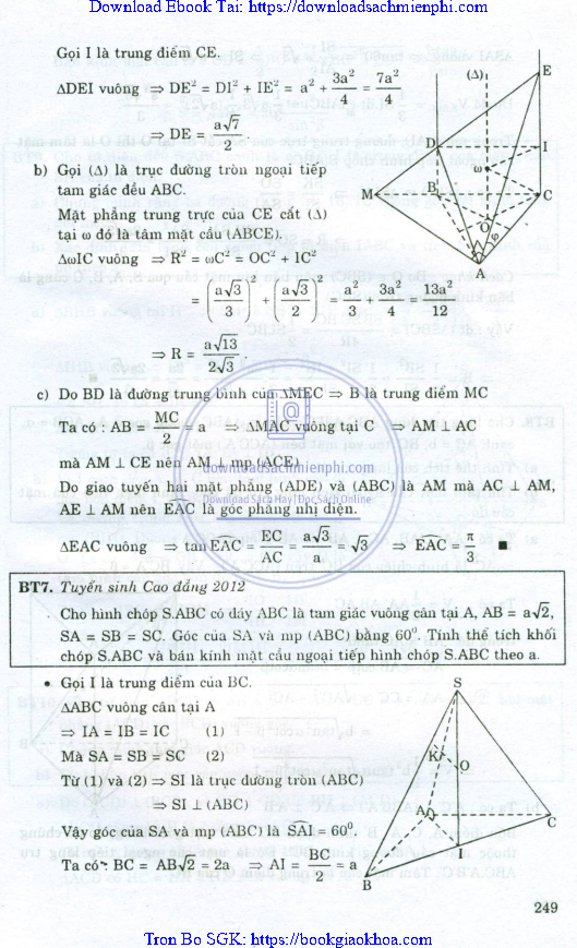 Giải Bài Tập Hình Học Lớp 12 Nâng Cao – Nguyễn Văn Lộc