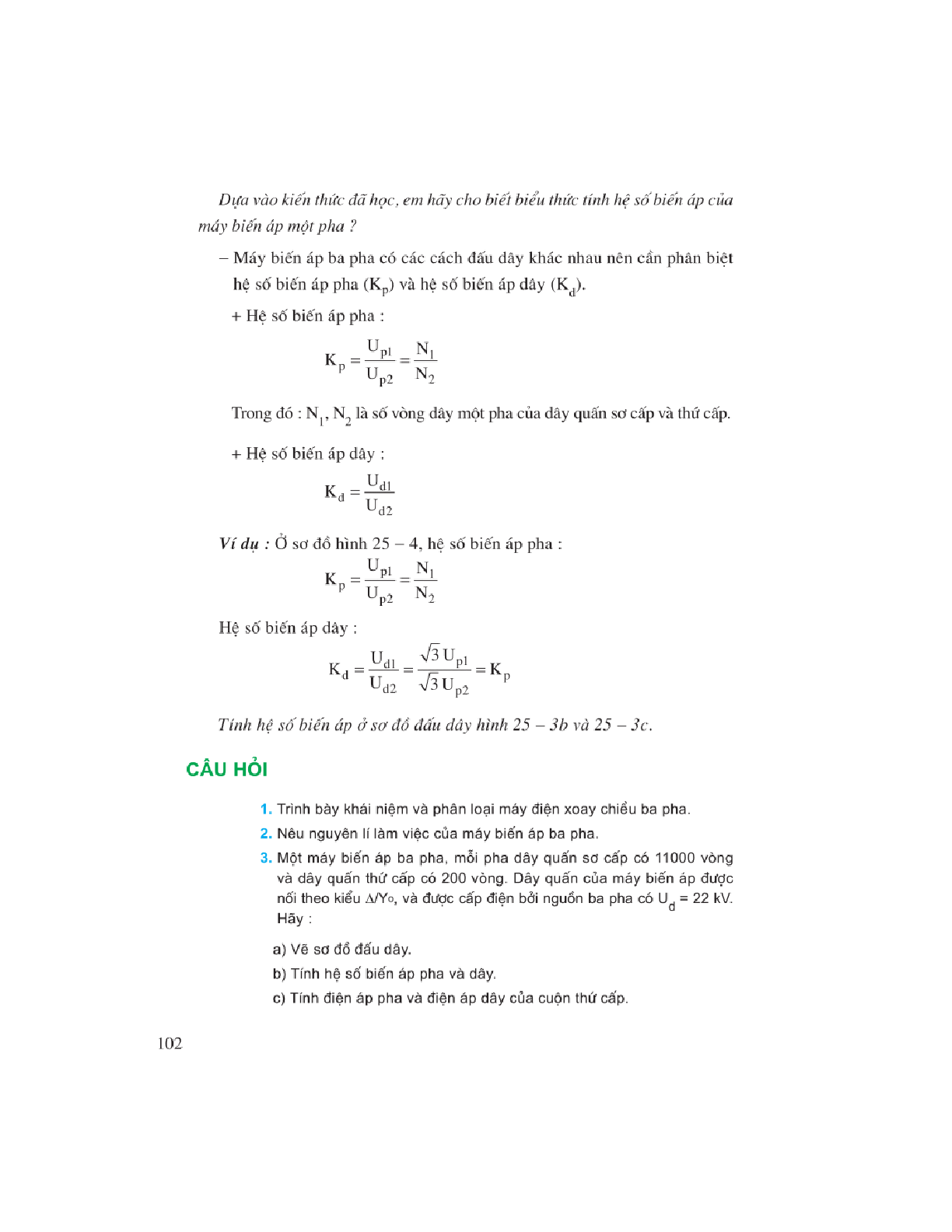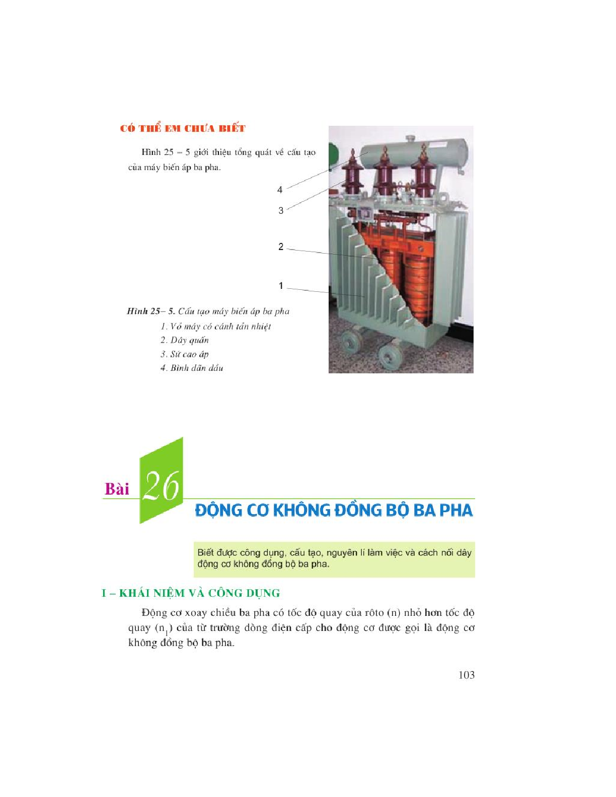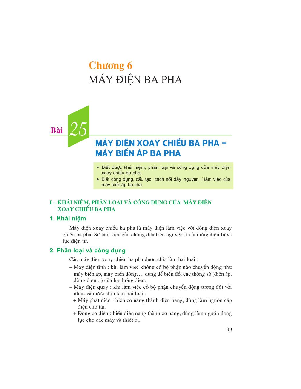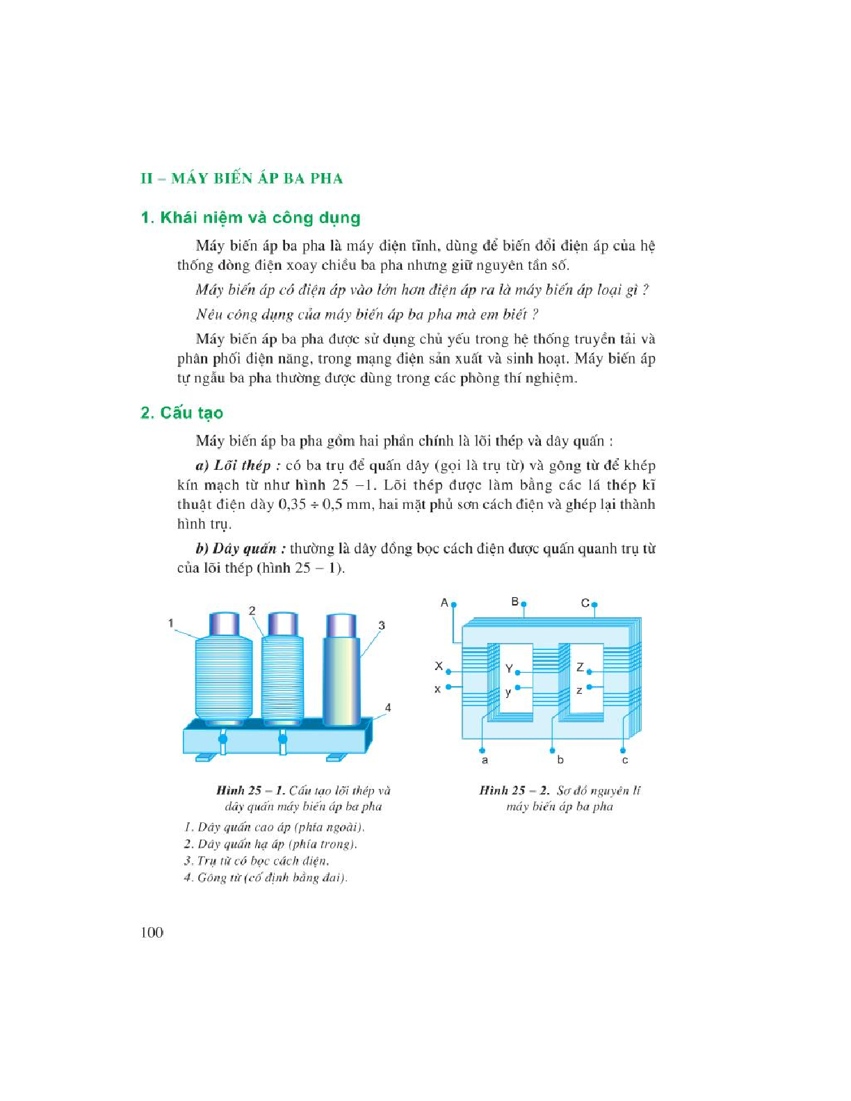 Sách Giáo Khoa Công Nghệ 12 – Bài 25: Máy điện xoay chiều ba pha – Máy biến áp ba pha
