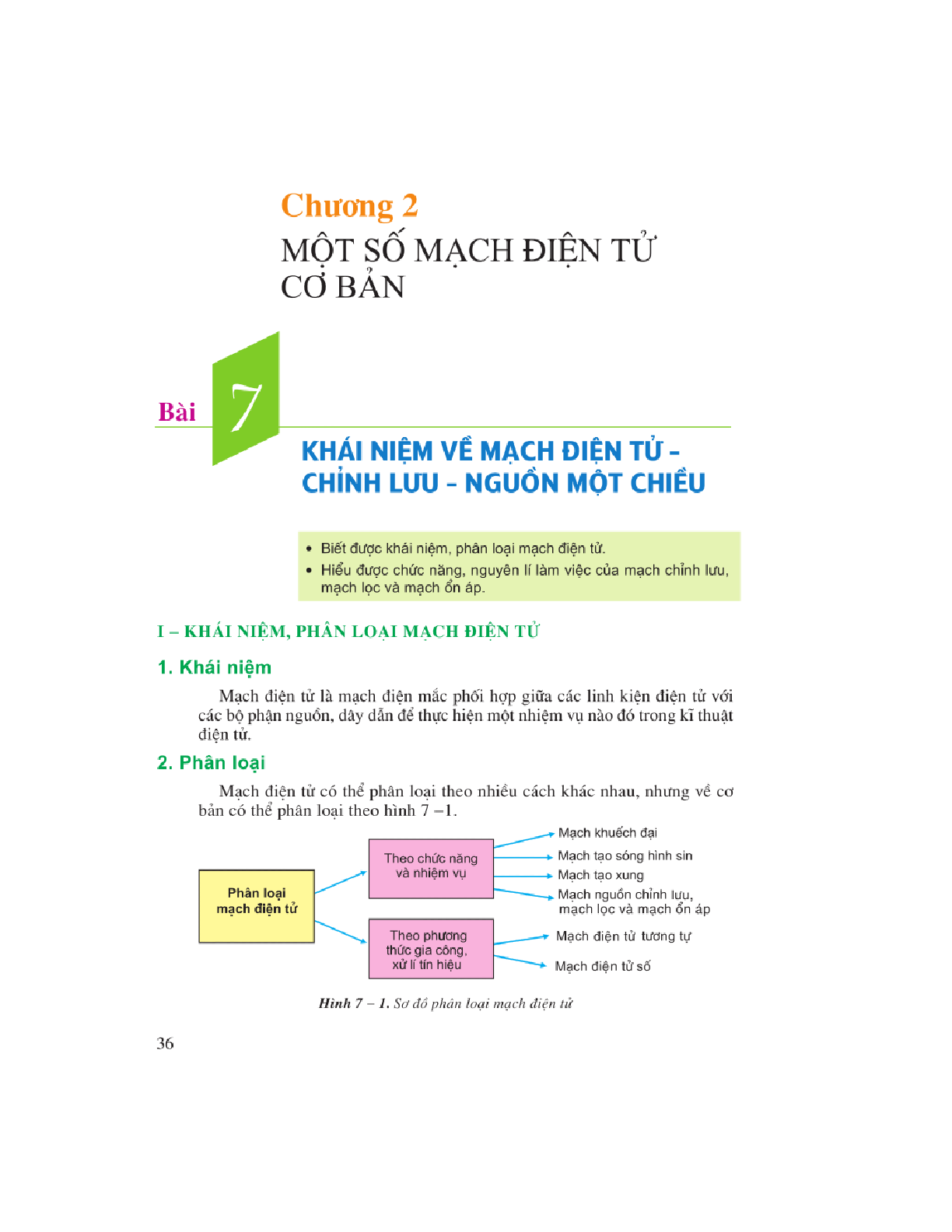 Sách Giáo Khoa Công Nghệ 12 – Bài 7: Khái niệm về mạch điện tử – Chỉnh lưu – Nguồn một chiều