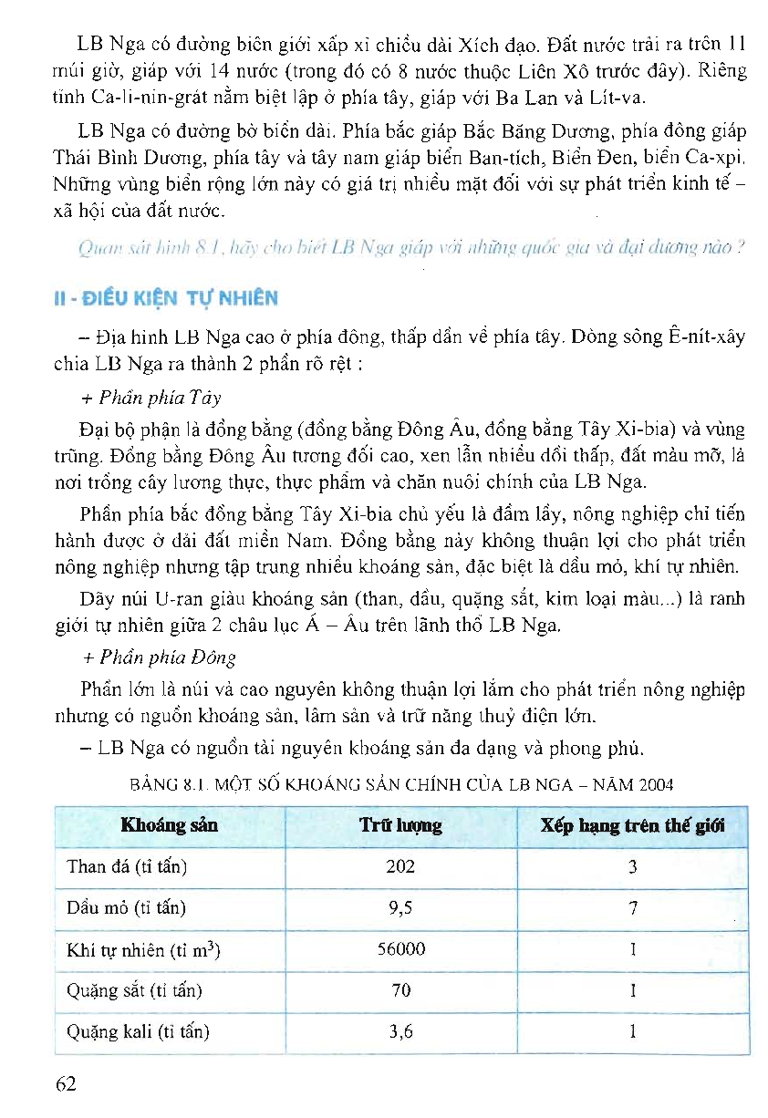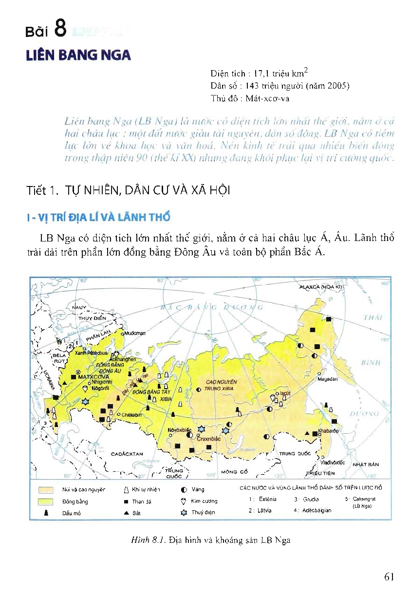 Sách Giáo Khoa Địa Lí Lớp 11 Cơ Bản – Bài 8: Liên bang Nga