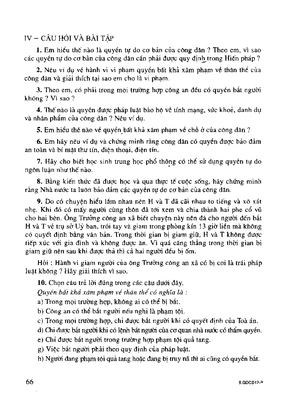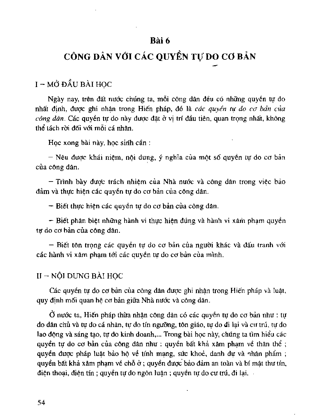 Sách Giáo Khoa Giáo Dục Công Dân Lớp 12 – Bài 6: Công dân với các quyền tự do cơ bản