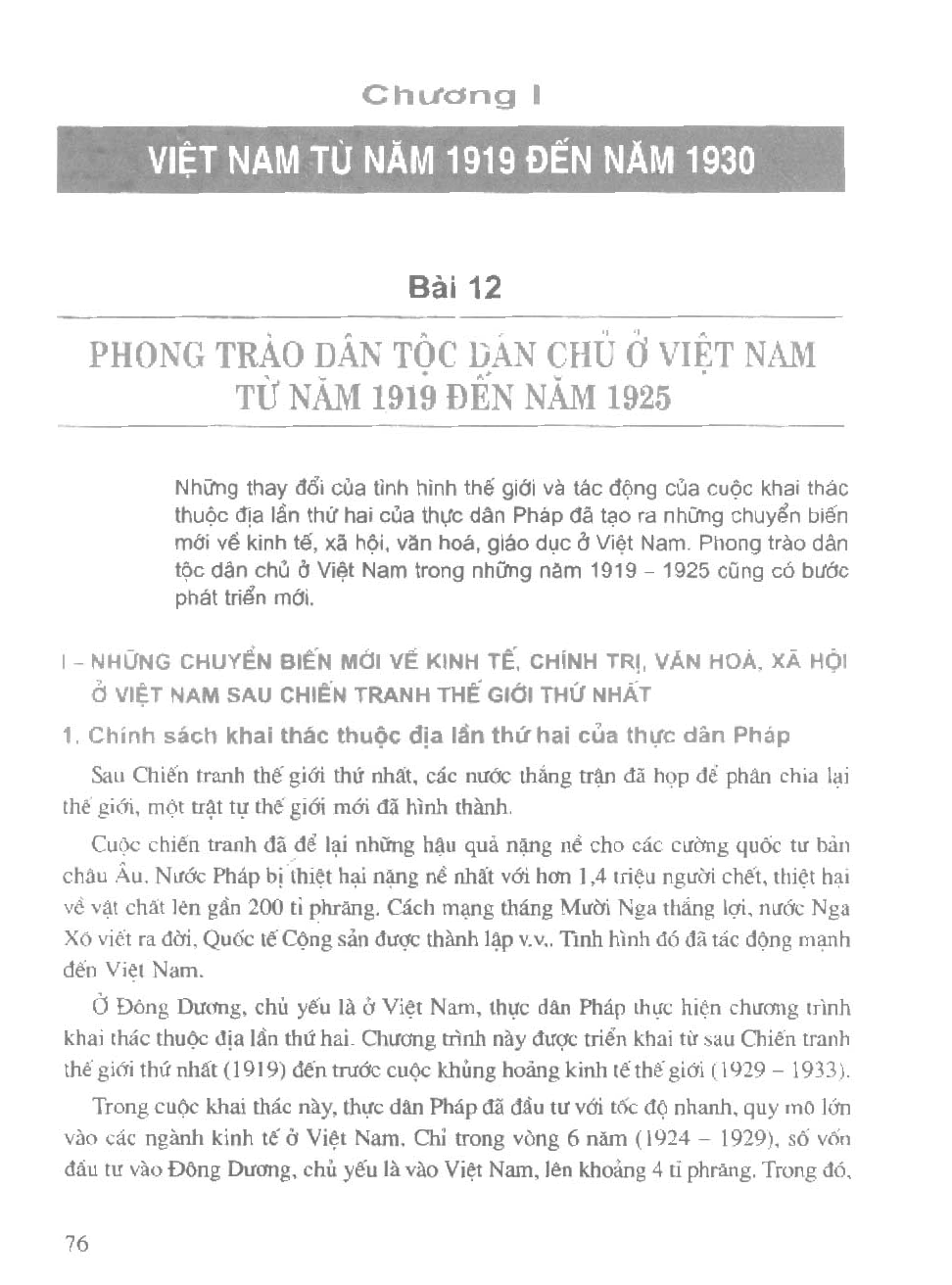 Sách Giáo Khoa Lịch Sử Lớp 12 Cơ Bản – Bài 12: Phong trào dân tộc dân chủ ở Việt Nam từ năm 1919 đến năm 1925