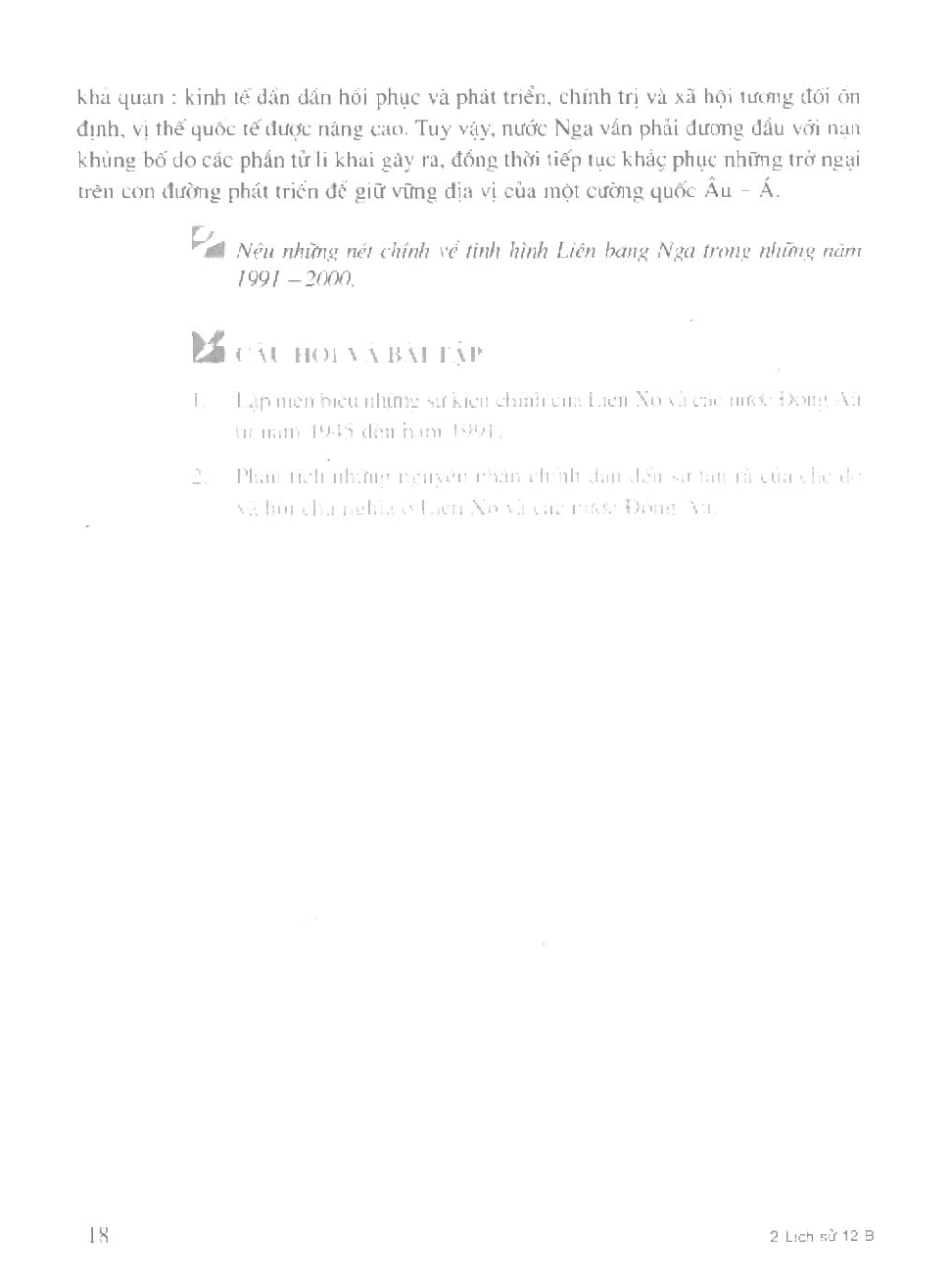 Sách Giáo Khoa Lịch Sử Lớp 12 Cơ Bản – Bài 2: Liên Xô và các nước Đông Âu (1945 – 2000). Liên Bang Nga (1991 – 2000)