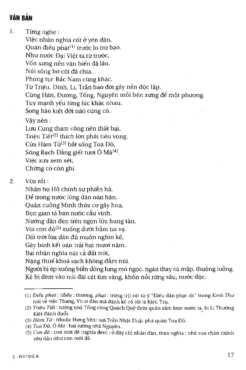 Sách Giáo Khoa Ngữ Văn Lớp 10 Tập 2 – Đại cáo bình Ngô – Phần 2: Tác phẩm