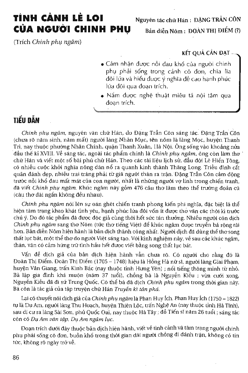 Sách Giáo Khoa Ngữ Văn Lớp 10 Tập 2 – Tình cảnh lẻ loi của người chinh phụ