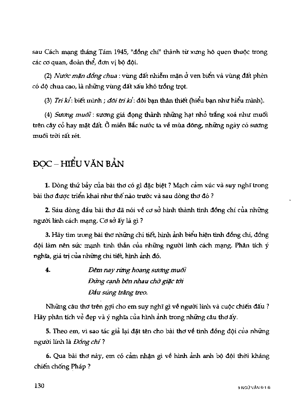 Sách Giáo Khoa Ngữ Văn Lớp 9 Tập 1 – Bài 10. Đồng chí