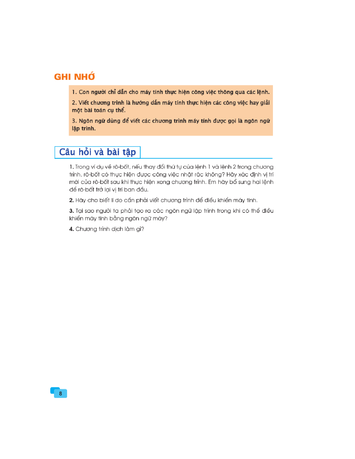 Tin Học Dành Cho THCS Quyển 3 – Bài 1: Máy tính và chương trình máy tính