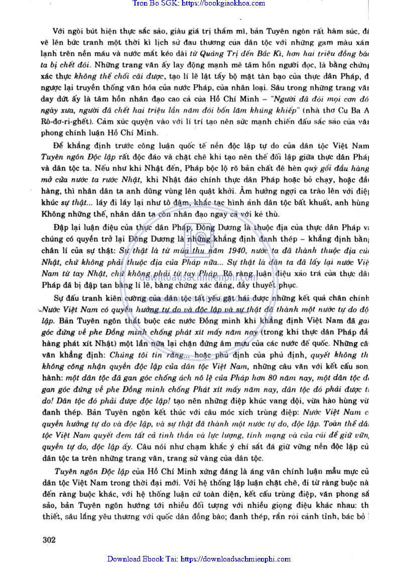 - ĐỀ 161. PHÂN TÍCH “PHẦN TUYÊN NGÔN” TRONG TUYÊN NGÔN ĐỘC LẬP CỦA CHỦ TỊCH HỒ CHÍ MINH, ĐỂ NÊU RÕ: Ý NGHĨA SÂU SẮC CỦA PHẦN TUYÊN NGÔN. LẬP LUẬN CHẶT CHẼ, GIỌNG VĂN HÙNG BIỆN ĐẦY SỨC THUYẾT PHỤC