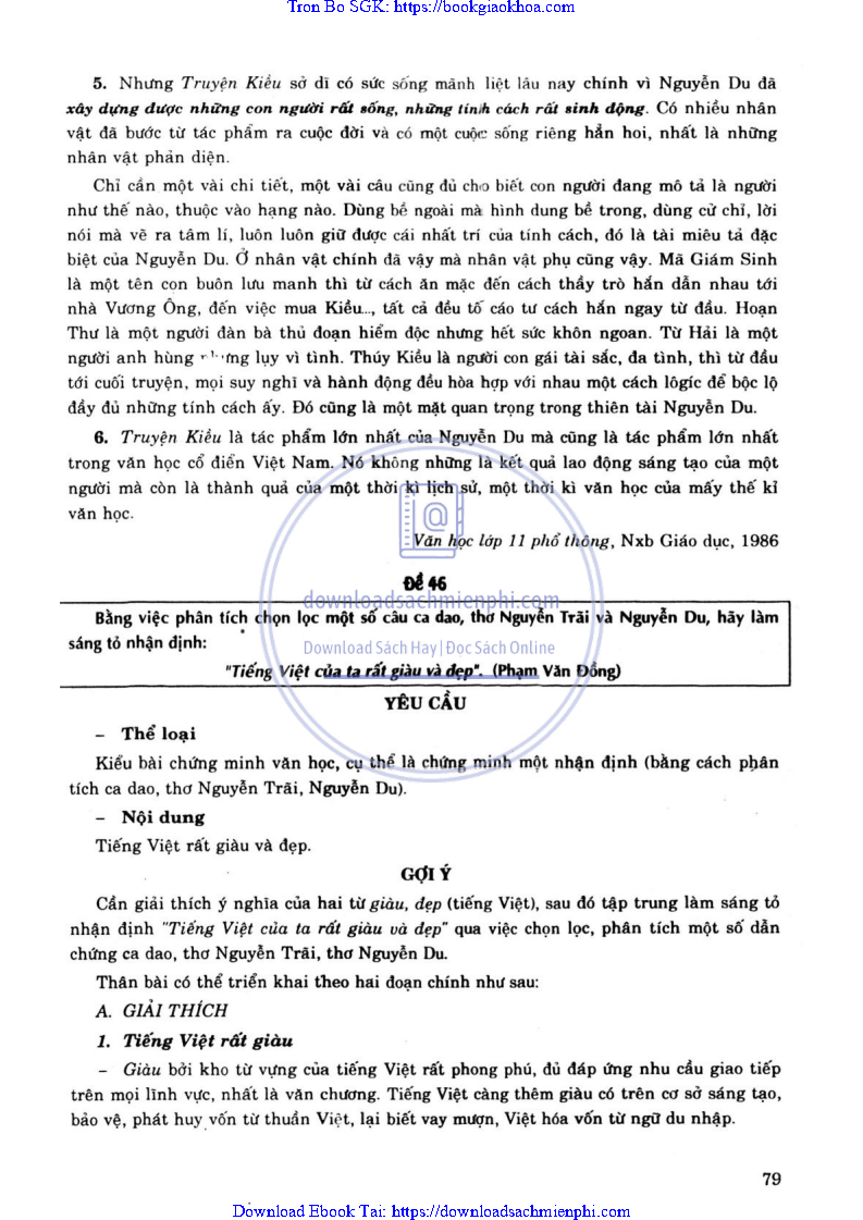 ĐỀ 46. BẰNG VIỆC PHÂN TÍCH CHỌN LỌC MỘT SỐ CÂU CA DAO, THƠ NGUYỄN TRÃI VÀ NGUYỄN DU, HÃY LÀM SÁNG TỎ NHẬN ĐỊNH: “TIẾNG VIỆT CỦA TA RẤT GIÀU VÀ ĐẸP”