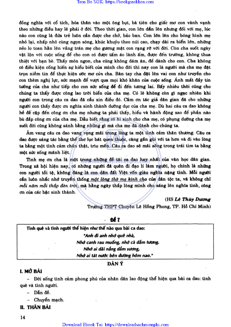 - ĐỀ 14. HÃY GIẢI THÍCH Ý KIẾN: “SINH RA TRONG CUỘC ĐỜI TRĂM ĐẮNG, NGÀN CAY NHƯNG CA DAO CỔ ĐÃ THỂ HIỆN TÁC GIẢ CỦA NÓ – NGƯỜI BÌNH DÂN LÀ NGHỆ SĨ THỨ NHẤT, NGHỆ SĨ CỦA MUÔN ĐỜI”