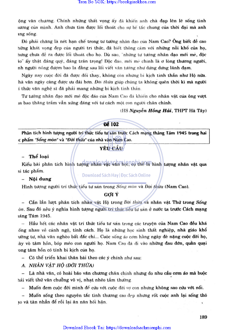 ĐỀ 102. PHÂN TÍCH HÌNH TƯỢNG NGƯỜI TRI THỨC TIỂU TƯ SẢN TRƯỚC CÁCH MẠNG THÁNG TÁM 1945 TRONG HAI TÁC PHẨM “SỐNG MÒN” VÀ “ĐỜI THỪA” CỦA NHÀ VĂN NAM CAO