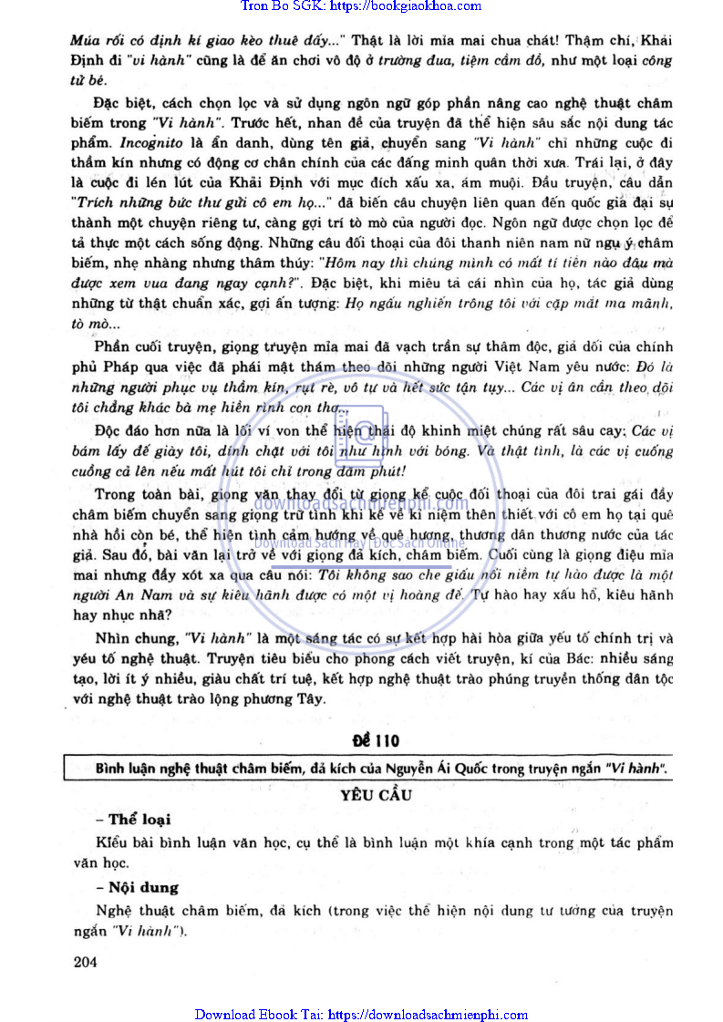 ĐỀ 109. HÃY PHÂN TÍCH NGHỆ THUẬT CHÂM BIẾM ĐẦY SÁNG TẠO TRONG TRUYỆN NGẮN “VI HÀNH” CỦA NGUYỄN ÁI QUỐC