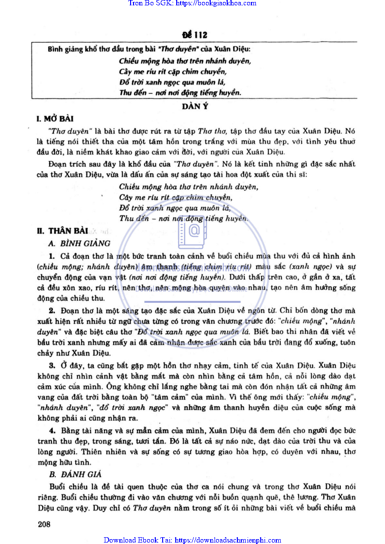 ĐỀ 112. BÌNH GIẢNG KHỔ THƠ ĐẦU TRONG BÀI “THƠ DUYÊN” CỦA XUÂN DIỆU