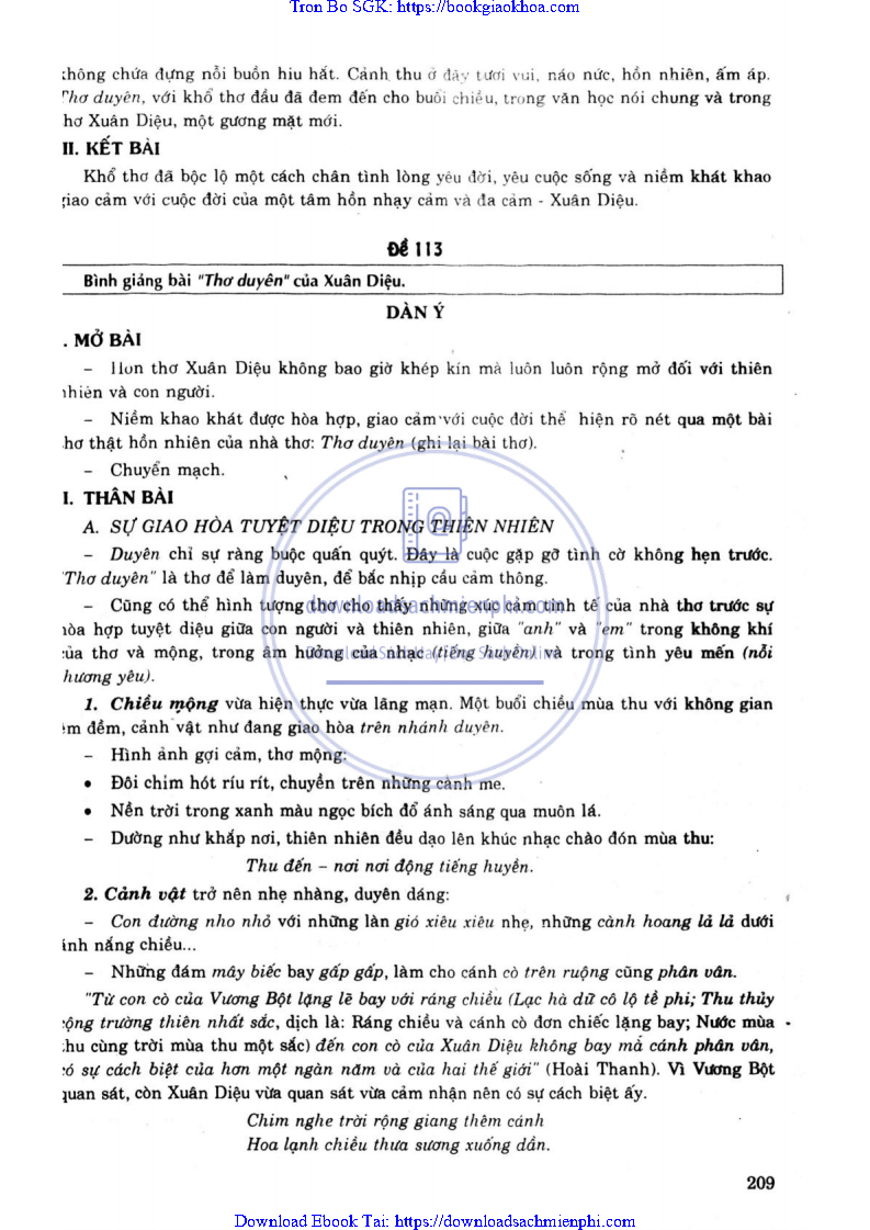 ĐỀ 113. BÌNH GIẢNG BÀI “THƠ DUYÊN” CỦA XUÂN DIỆU