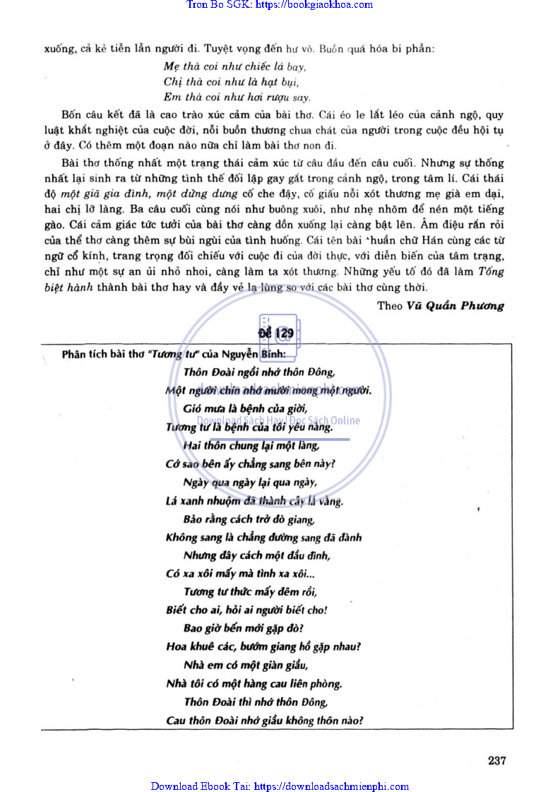 ĐỀ 129. PHÂN TÍCH BÀI THƠ “TƯƠNG TƯ” CỦA NGUYỄN BÍNH