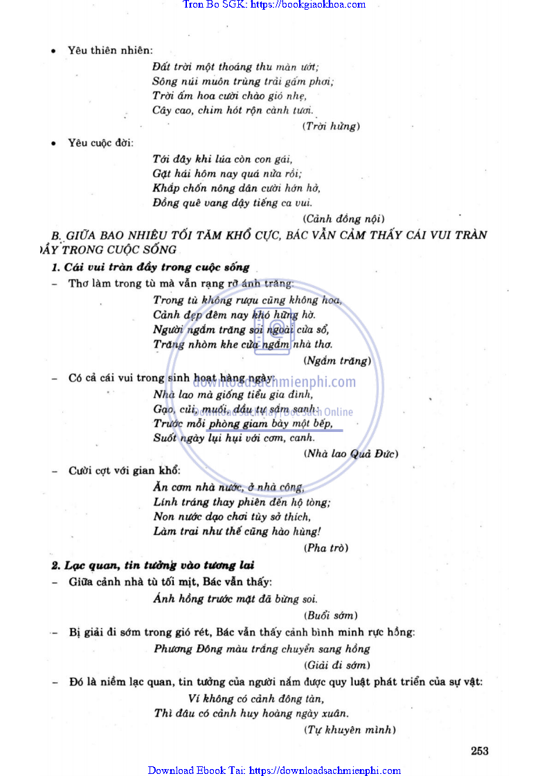 ĐỀ 136. ĐỌC “NHẬT KÍ TRONG TÙ” CỦA HỒ CHÍ MINH, HOÀI THANH CÓ NHẬN XÉT: “NHƯNG GIỮA BAO NHIÊU TỐI TĂM DÀY ĐẶC, ÁNH SÁNG VẪN NGỜI LÊN. ÁNH SÁNG CỦA MỘT TẤM LÒNG THƯƠNG NGƯỜI VÀ YÊU ĐỜI VÔ HẠN. GIỮA BAO NHIÊU KHỔ CỰC, BÁC VẪN CẢM THẤY CÁI VUI TRÀN ĐẦY TRONG CUỘC SỐNG”. HÃY PHÂN TÍCH Ý KIẾN TRÊN VÀ DÙNG MỘT SỐ BÀI THƠ TRONG “NHẬT KÍ TRONG TÙ” ĐỂ CHỨNG MINH
