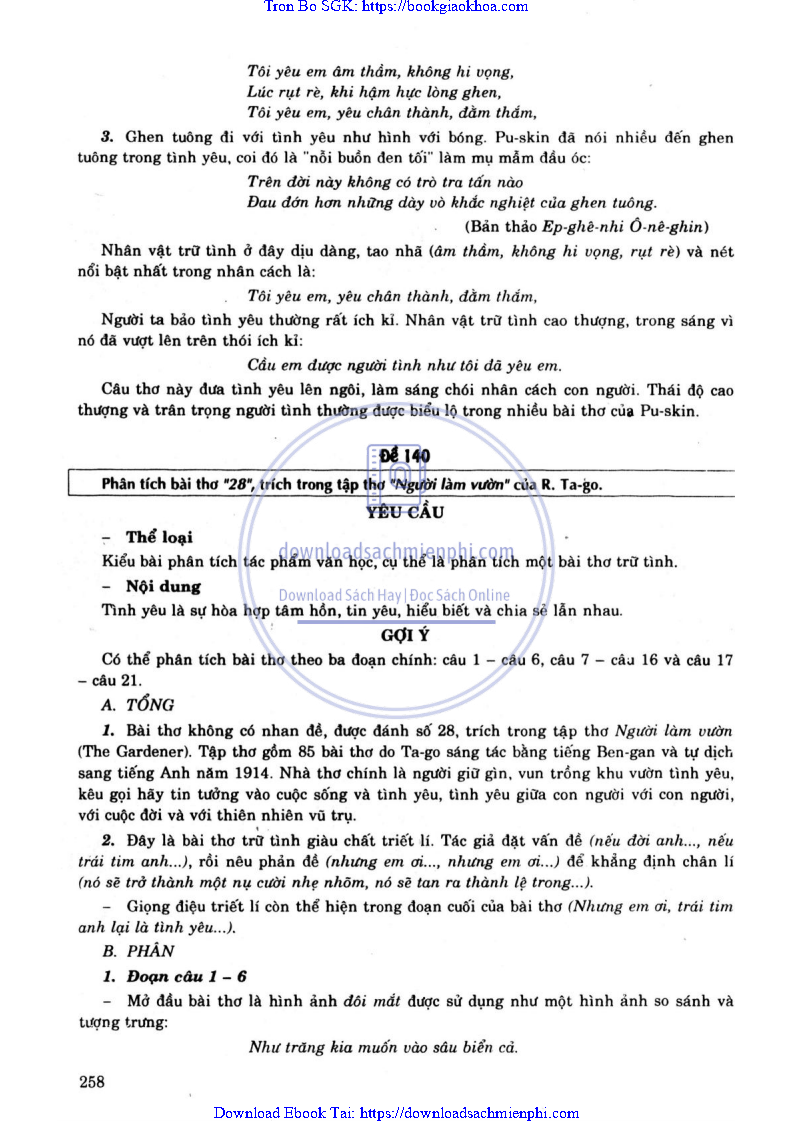 ĐỀ 140. PHÂN TÍCH BÀI THƠ “28” TRÍCH TẬP THƠ “NGƯỜI LÀM VƯỜN” CỦA R. TA-GO