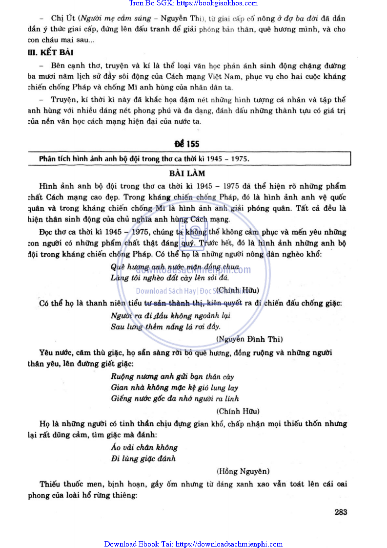 ĐỀ 162. PHÂN TÍCH HÌNH ẢNH BỘ ĐỘI TRONG THƠ CA THỜI KÌ 1945 – 1975